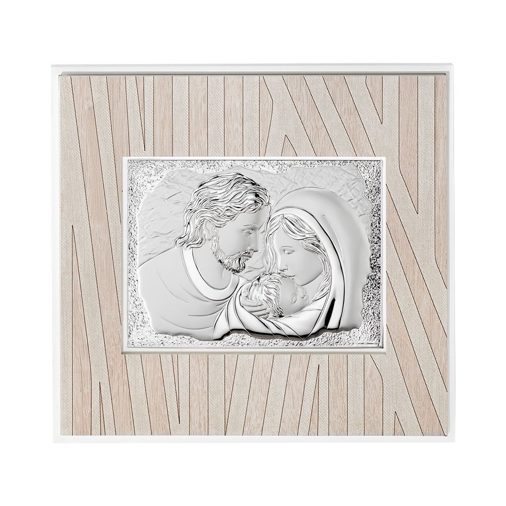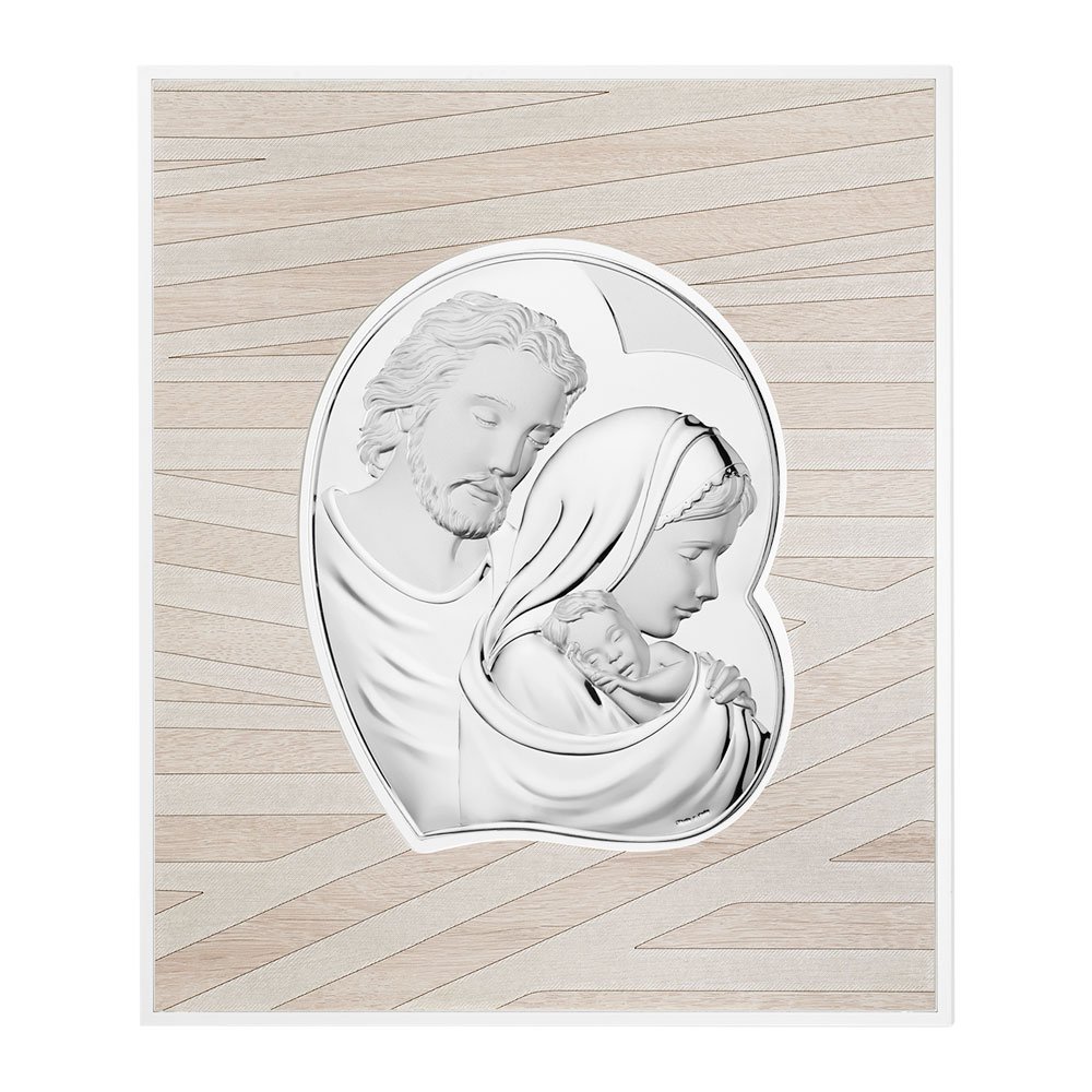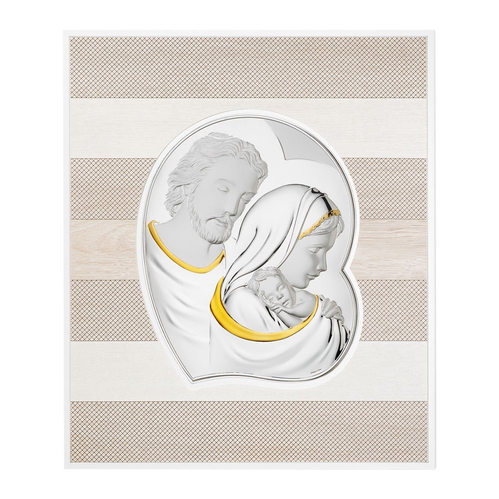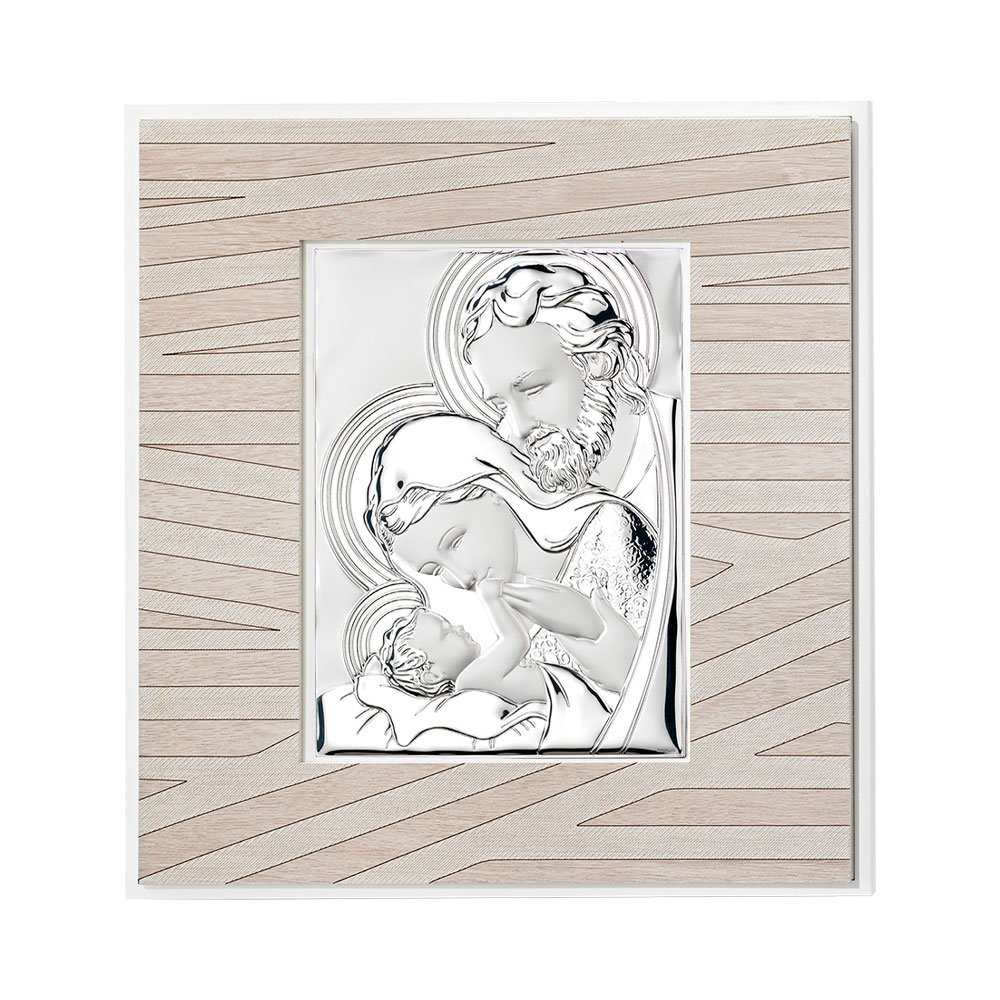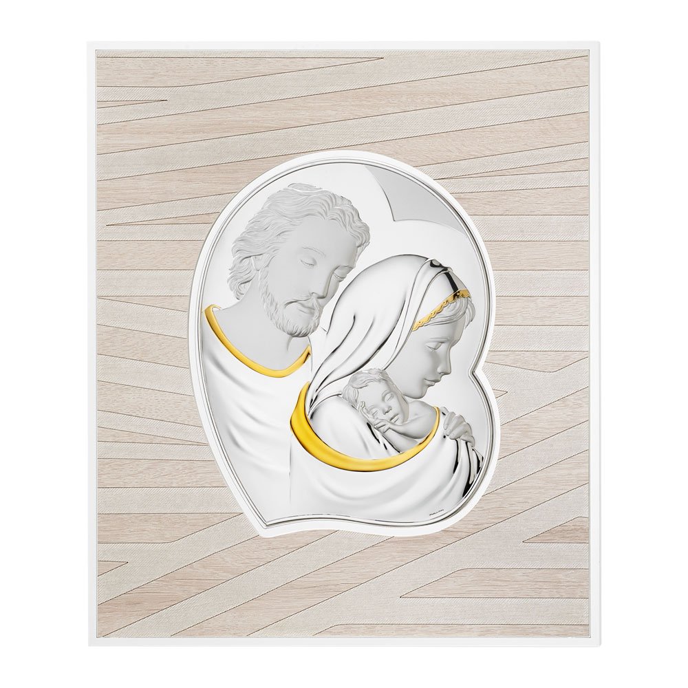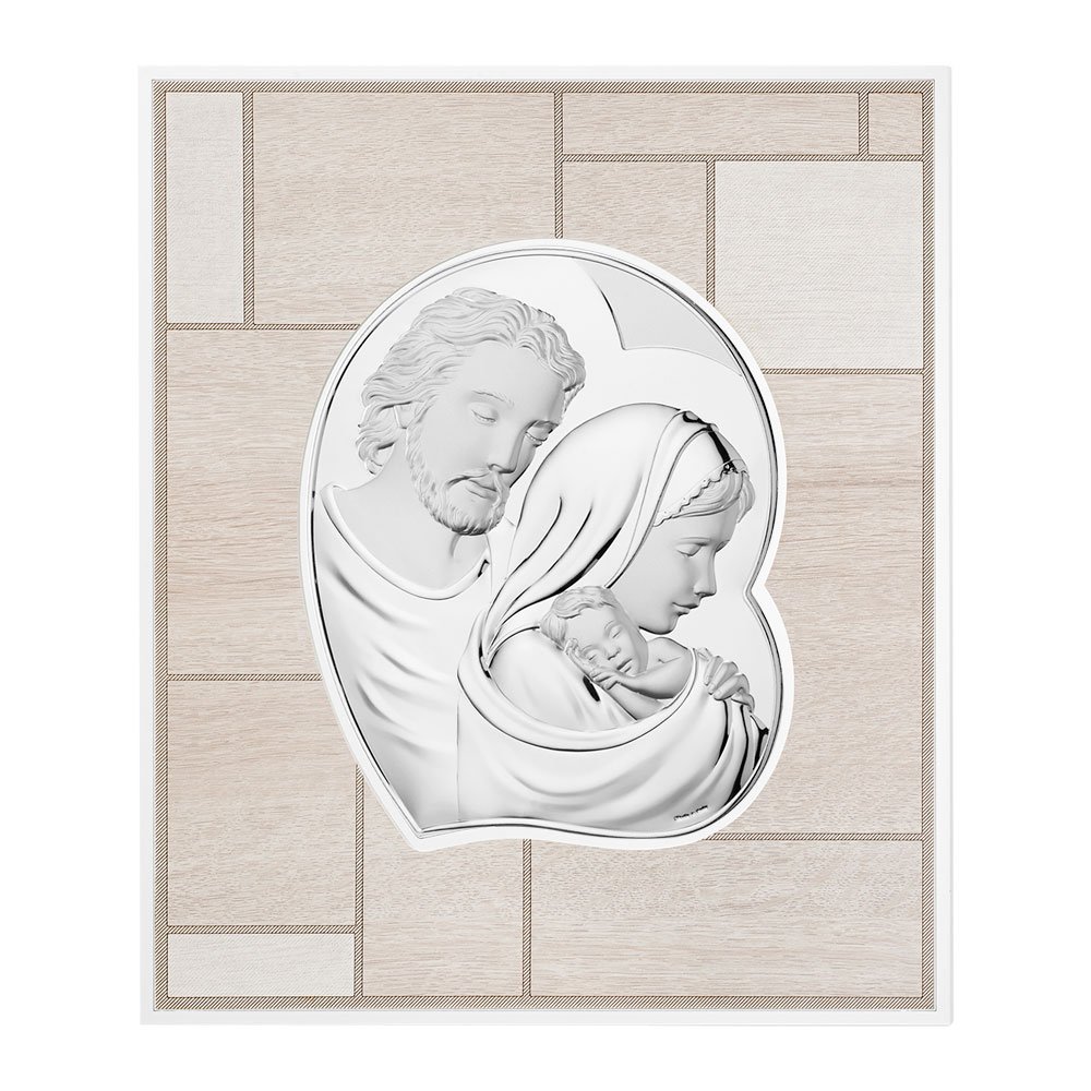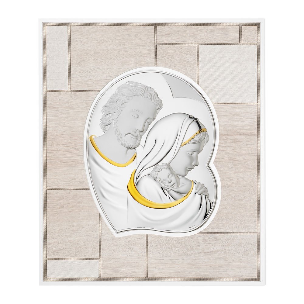 QUADRO MODERNO SACRA FAMIGLIA COLORATI IN ARGENTO PVD DA APPOGGIO E DA PARETE