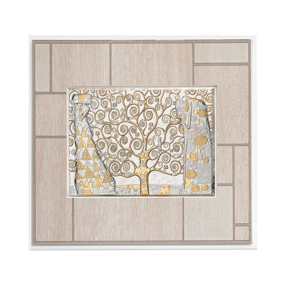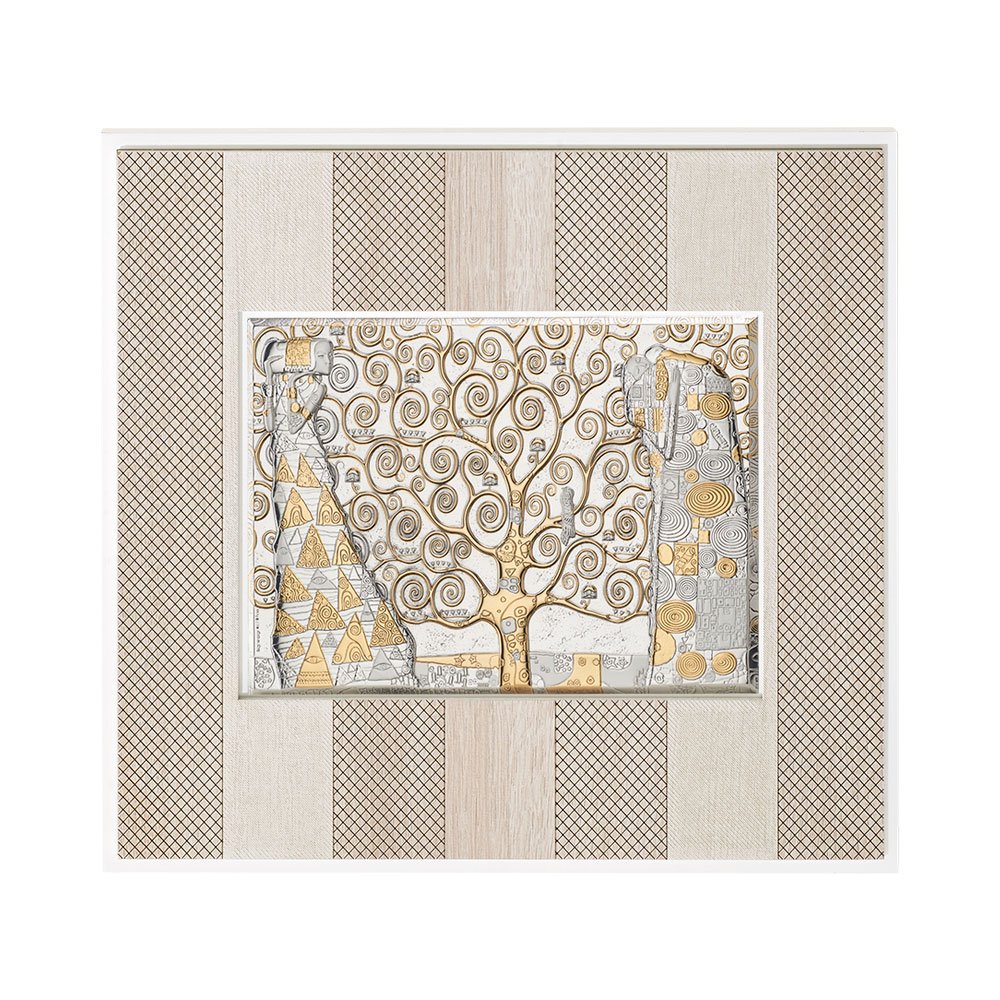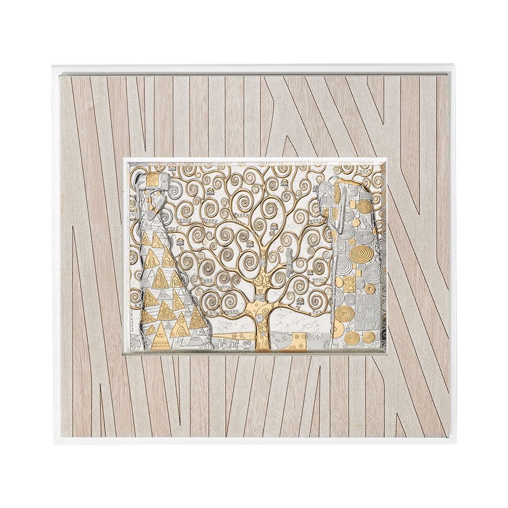 QUADRO MODERNO ALBERO DELLA VITA DI KLIMT IN ARGENTO BILAMINATO CON PARTICOLARI IN ORO DA APPOGGIO E DA PARETE