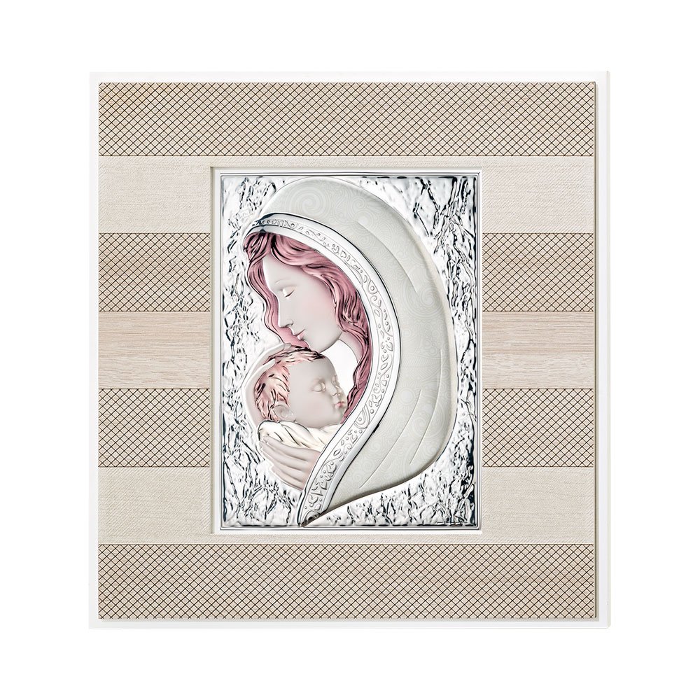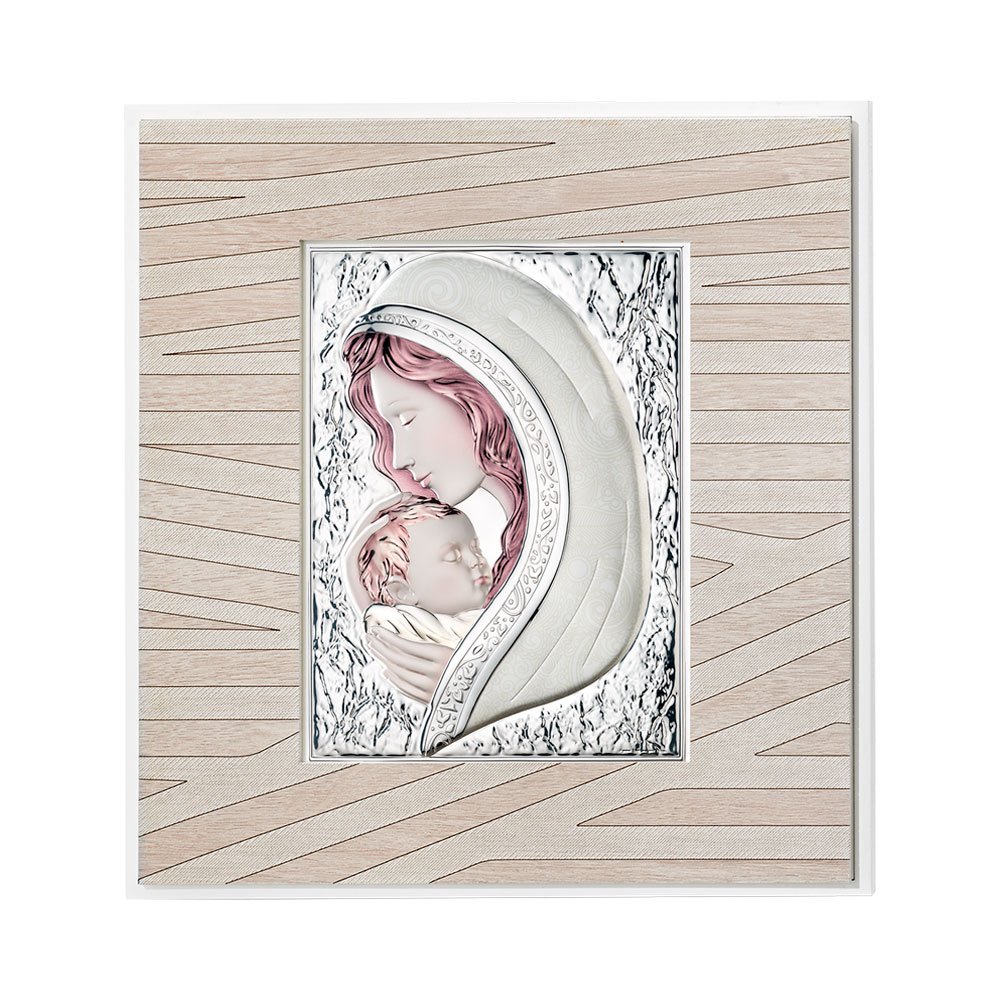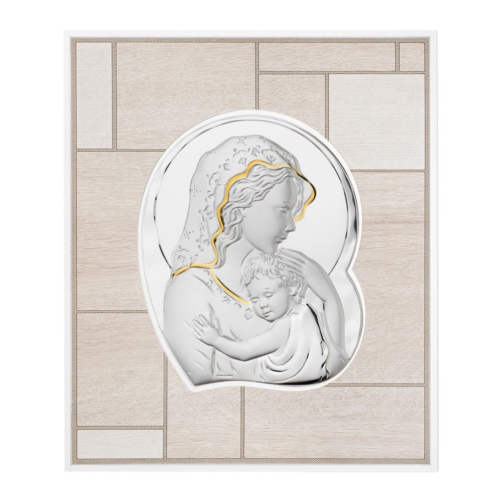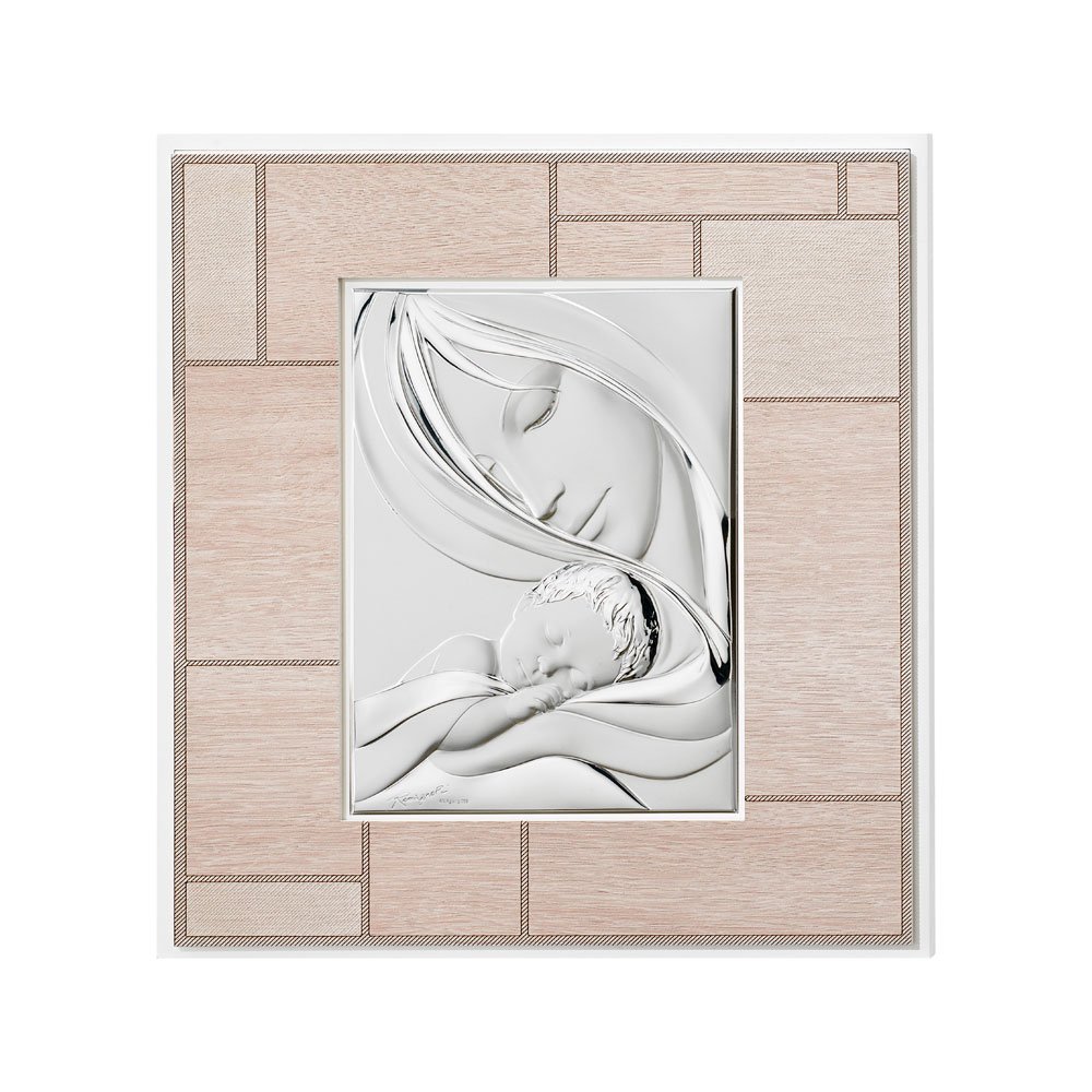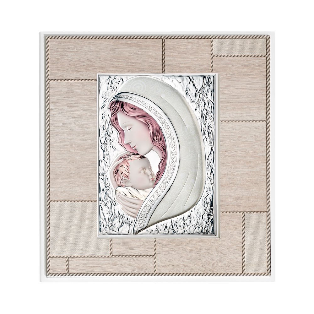 QUADRO MODERNO MADONNA COLORATI IN ARGENTO PVD DA APPOGGIO E DA PARETE