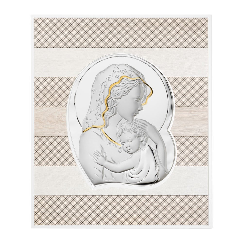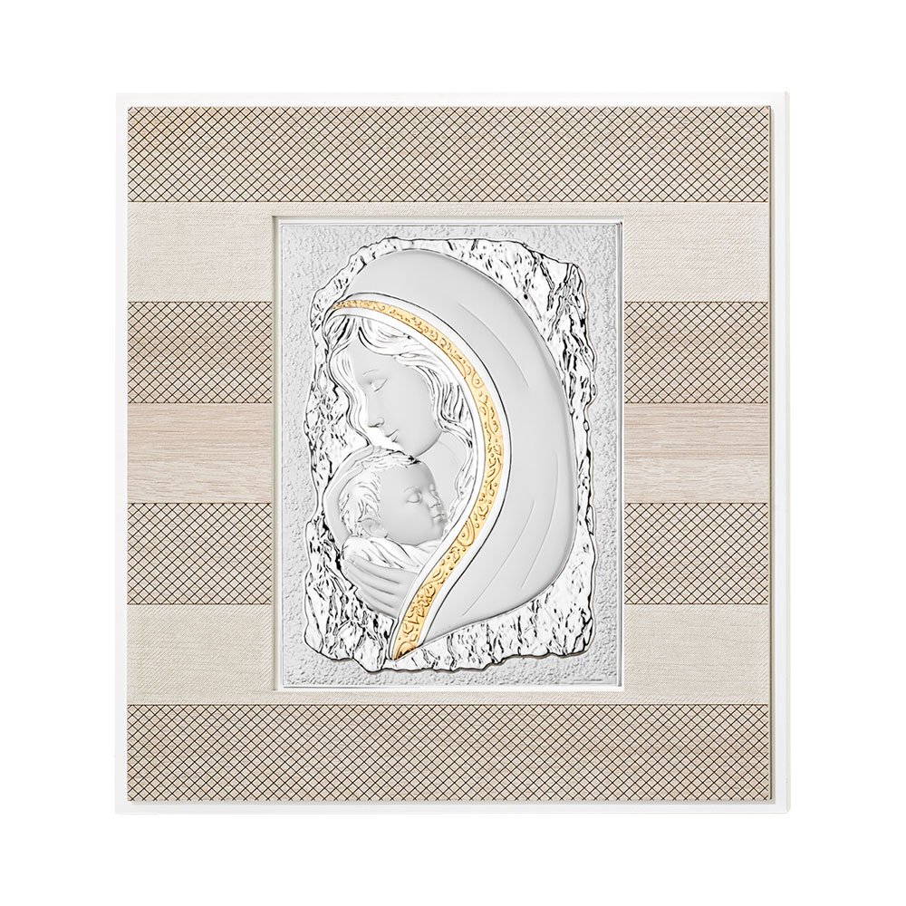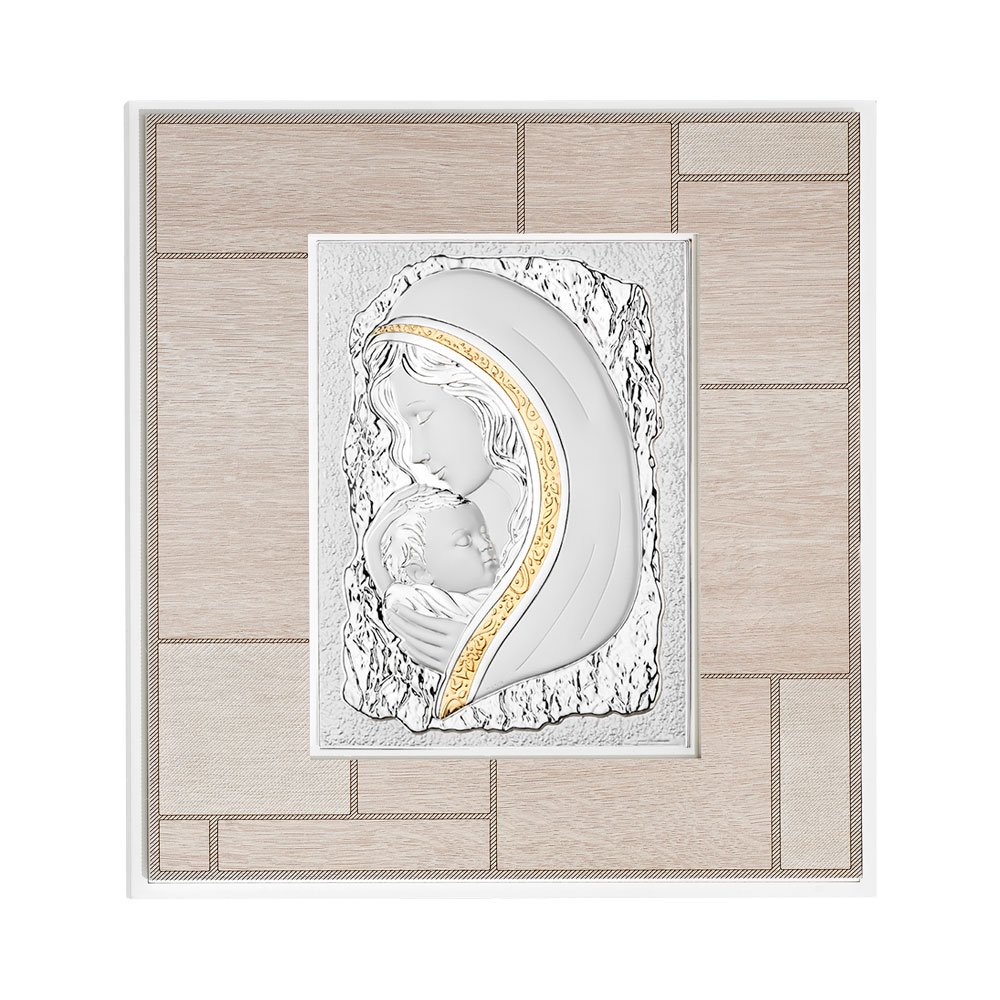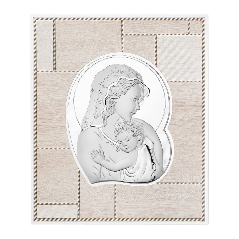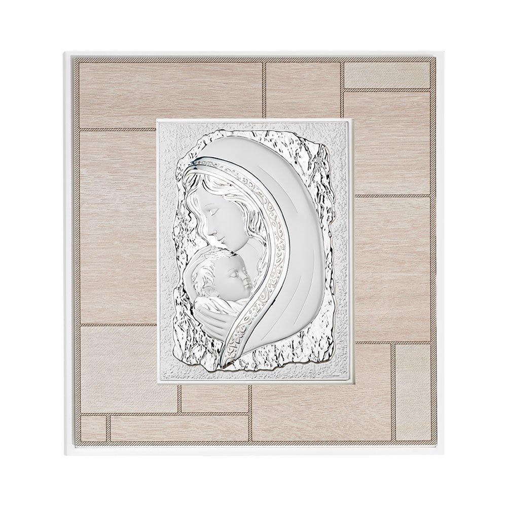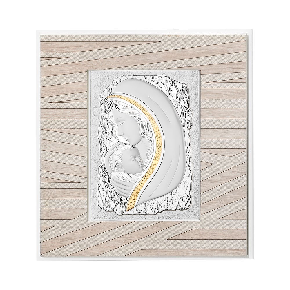 QUADRO MODERNO MADONNA COLORATI IN ARGENTO PVD DA APPOGGIO E DA PARETE