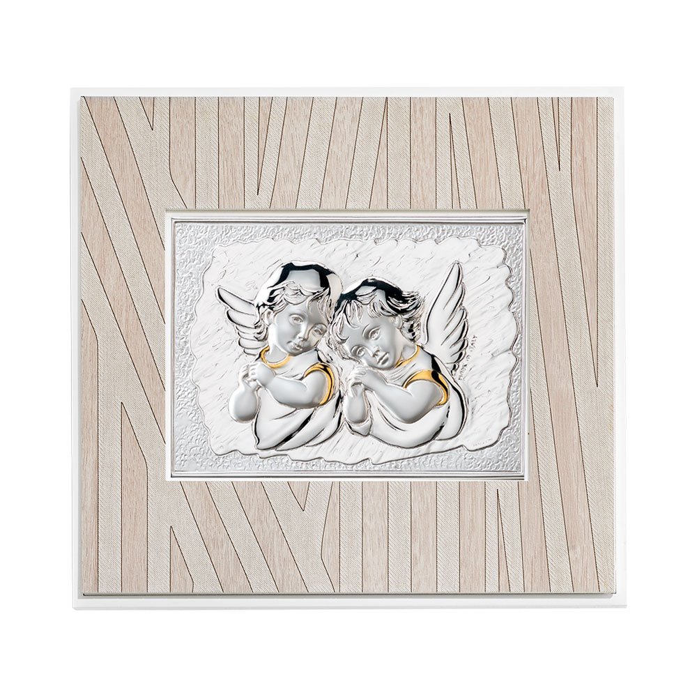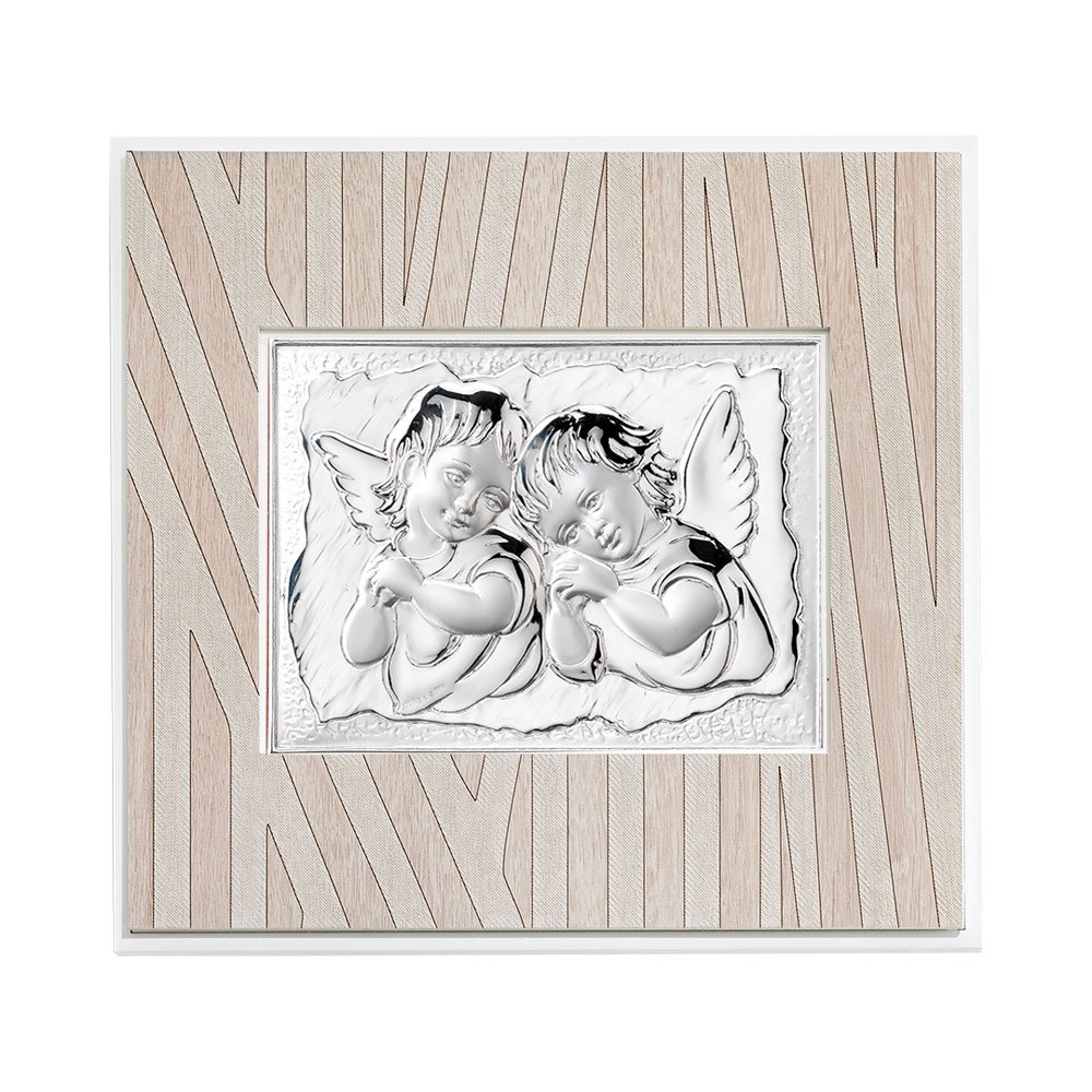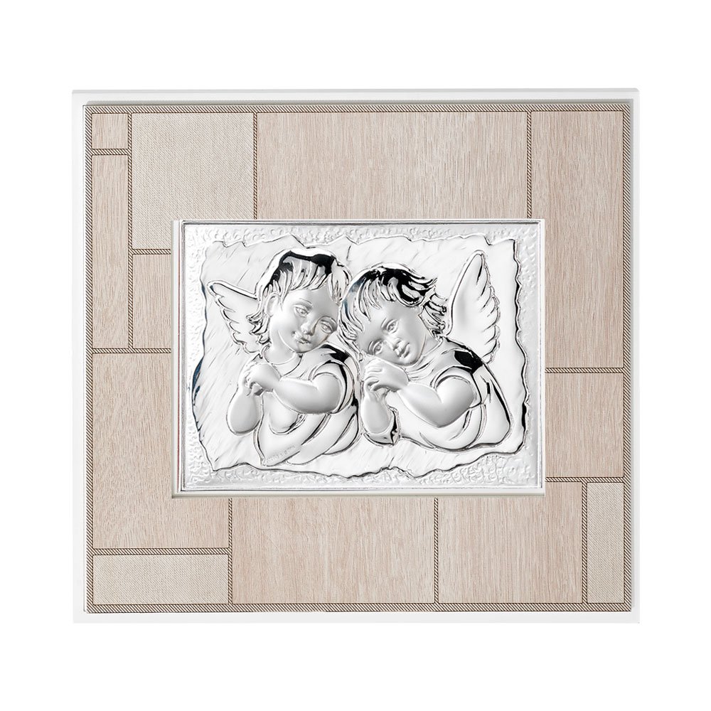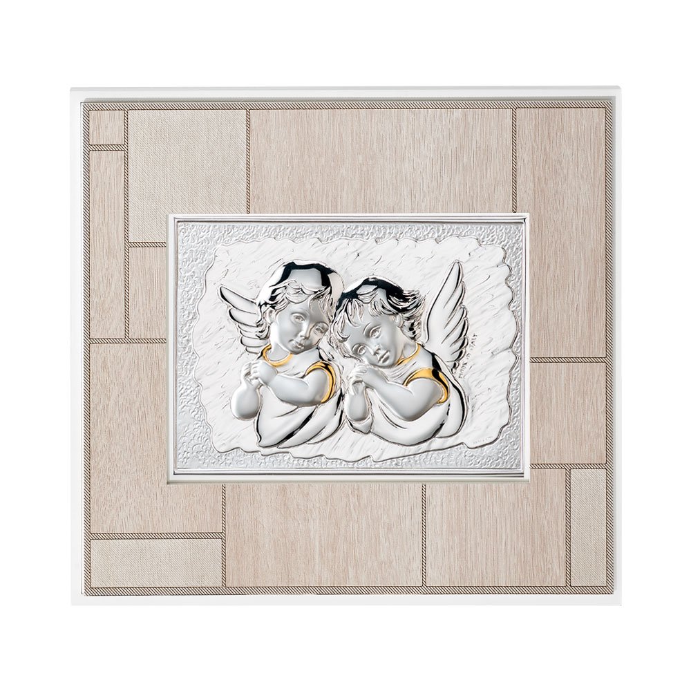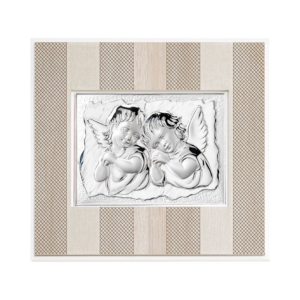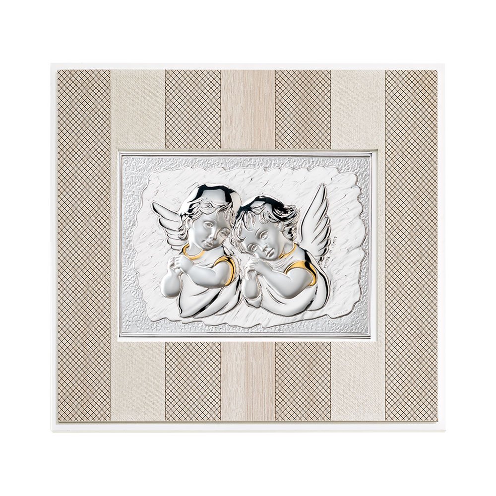QUADRO MODERNO CON ANGELI IN ARGENTO PVD DA APPOGGIO E DA PARETE