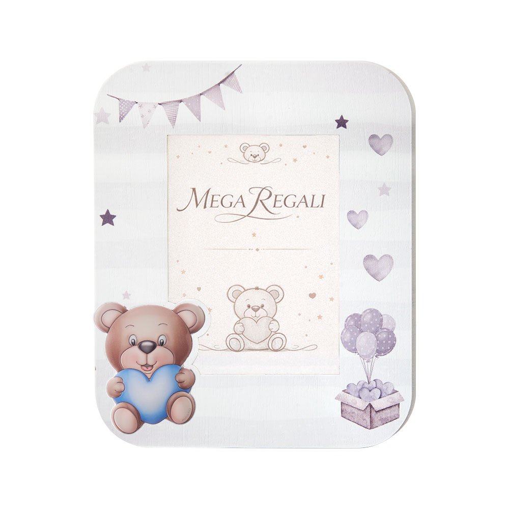 PORTAFOTO IN LEGNO MODERNO CON ORSACCHIOTTO IN ARGENTO PVD COLORATO CELESTE