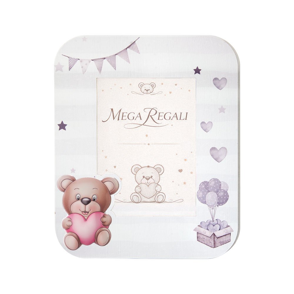 PORTAFOTO IN LEGNO MODERNO CON ORSACCHIOTTO IN ARGENTO PVD COLORATO ROSA