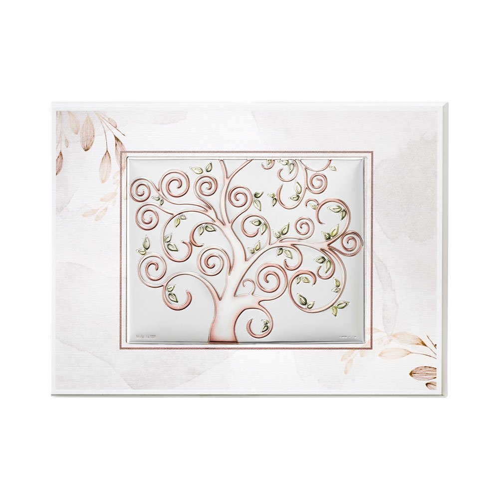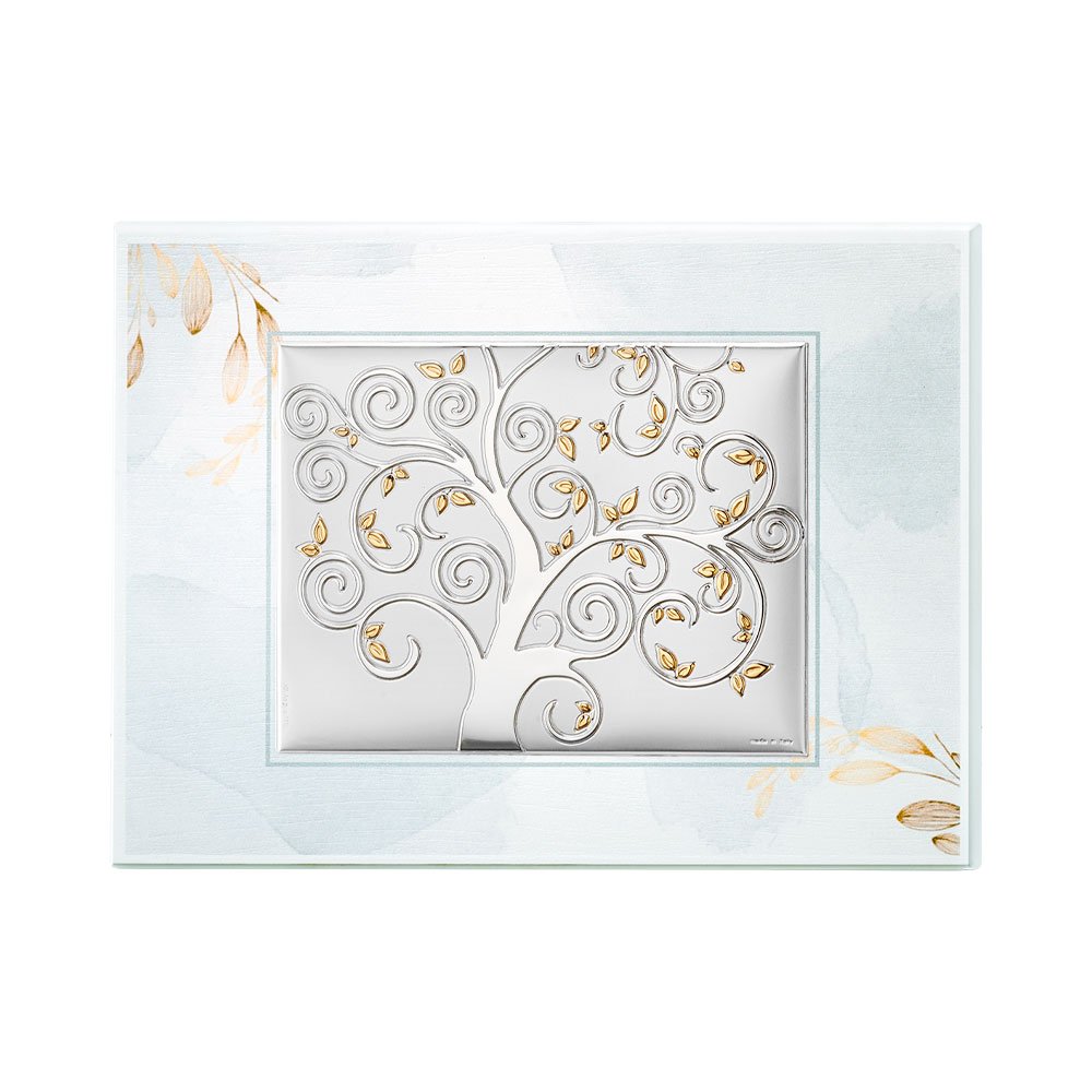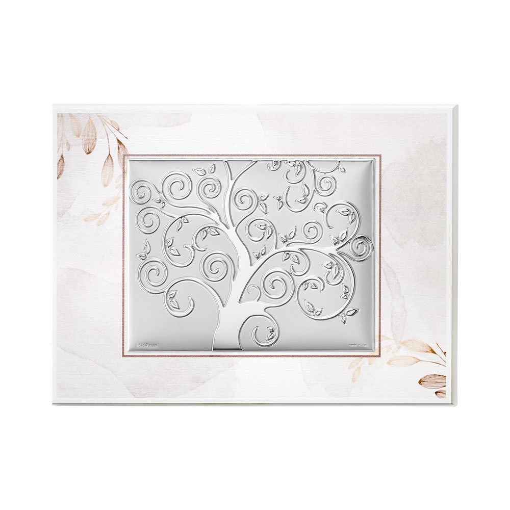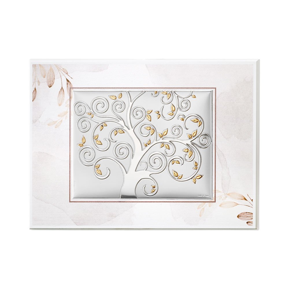 TAVOLA RAMI TORTORA CON PLACCA ALBERO DELLA VITA IN ARGENTO BILAMINATO DA APPOGGIO E DA PARETE