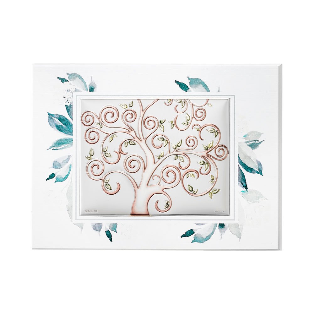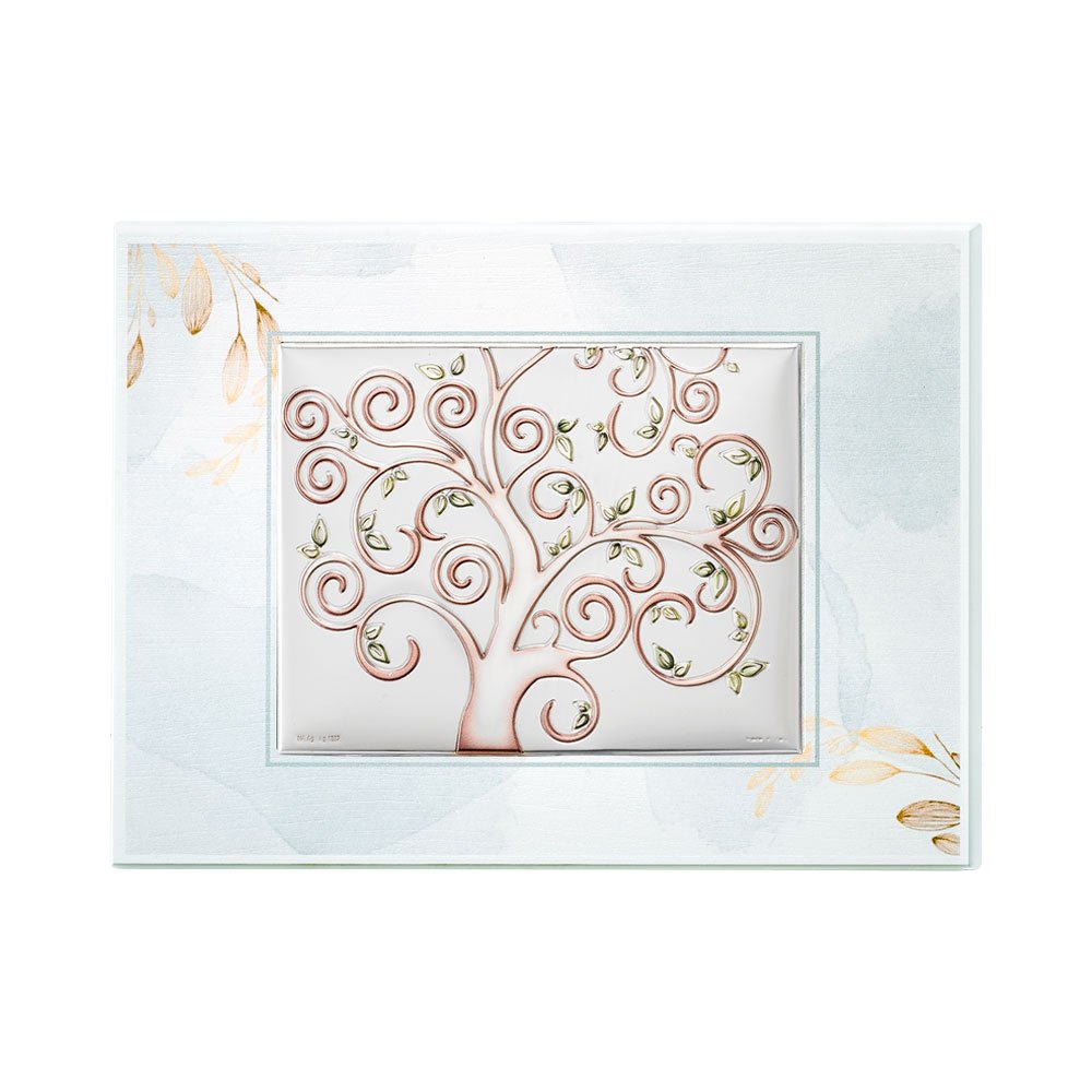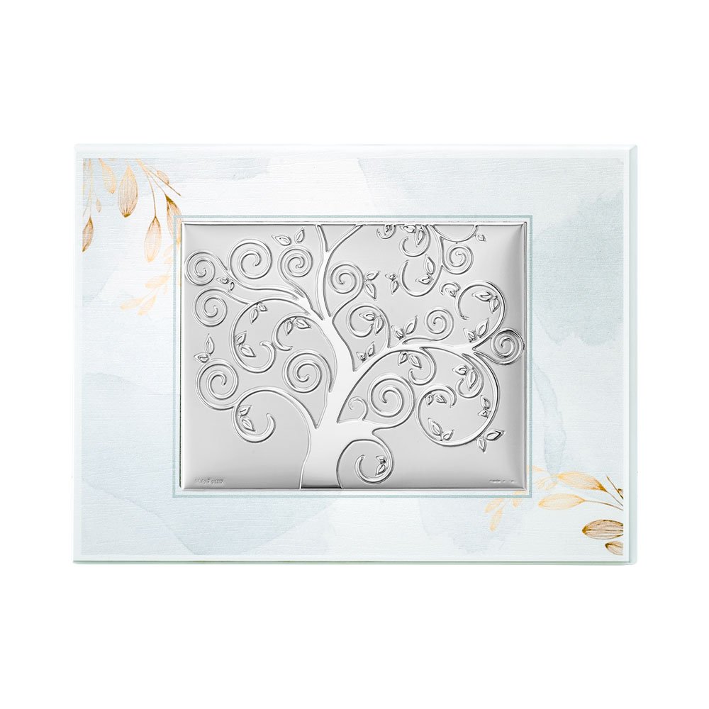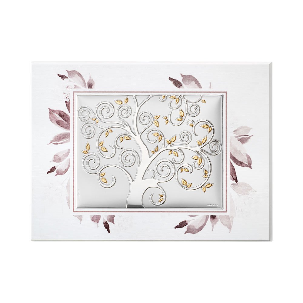 TAVOLA RAMI TORTORA CON PLACCA ALBERO DELLA VITA IN ARGENTO BILAMINATO DA APPOGGIO E DA PARETE