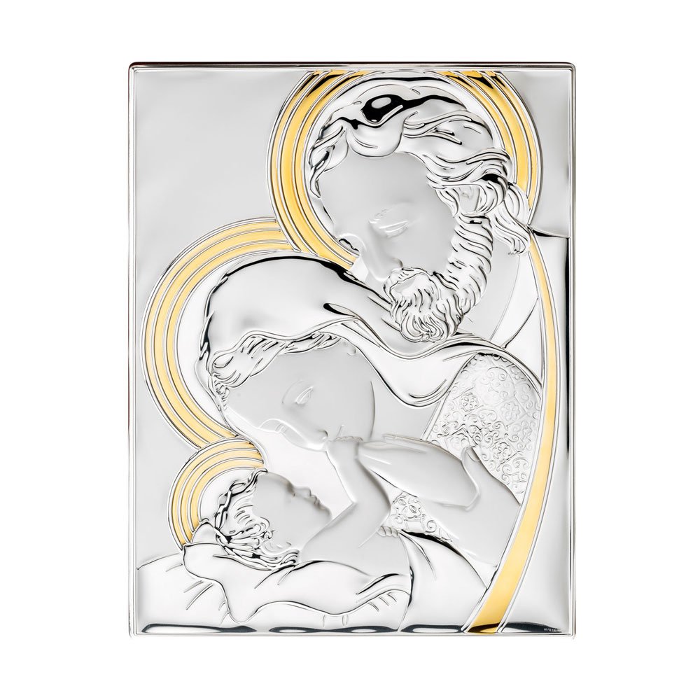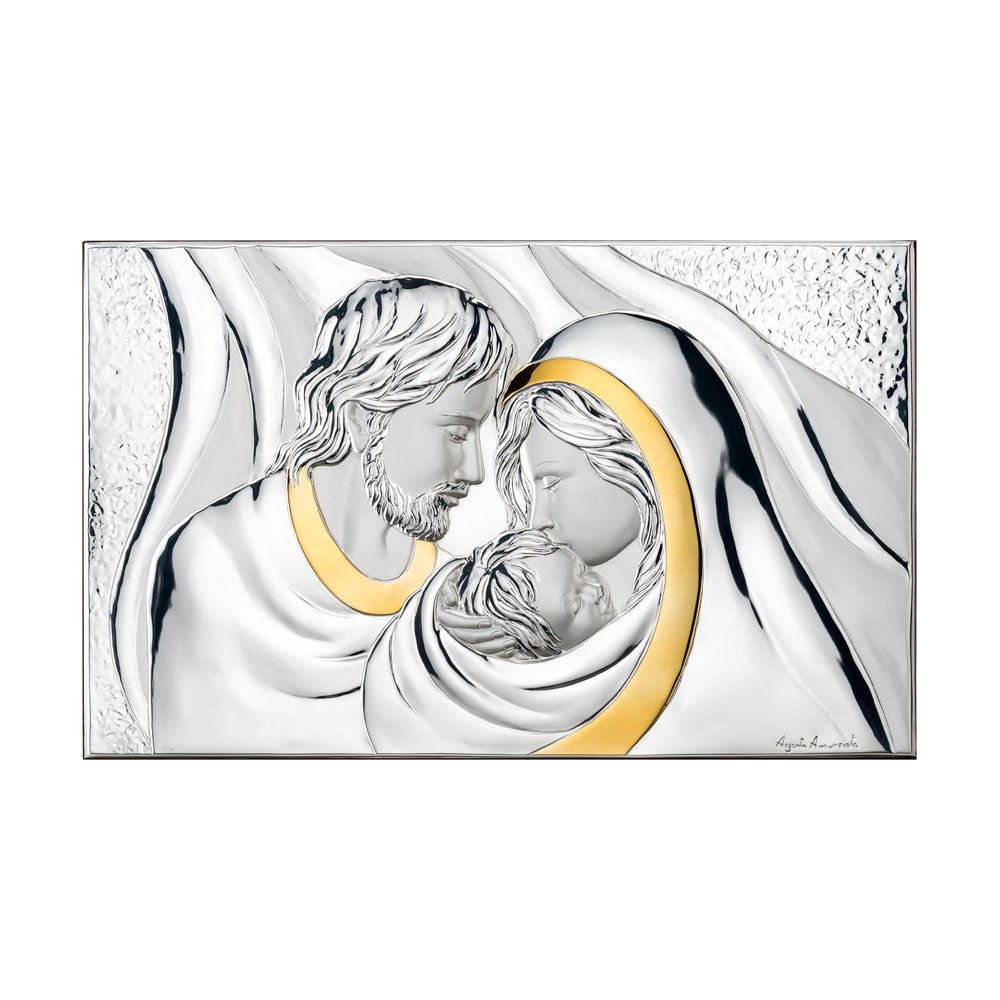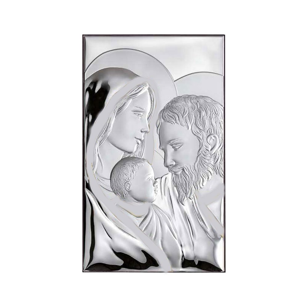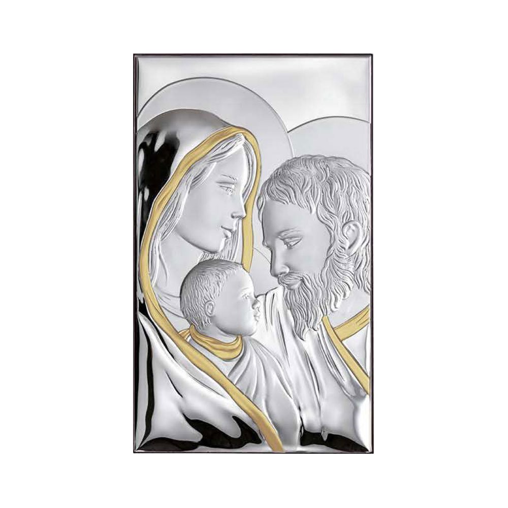 ICONA SACRA FAMIGLIA REALIZZATA IN ARGENTO PVD RETRO LEGNO DA PARETE E DA APPOGGIO