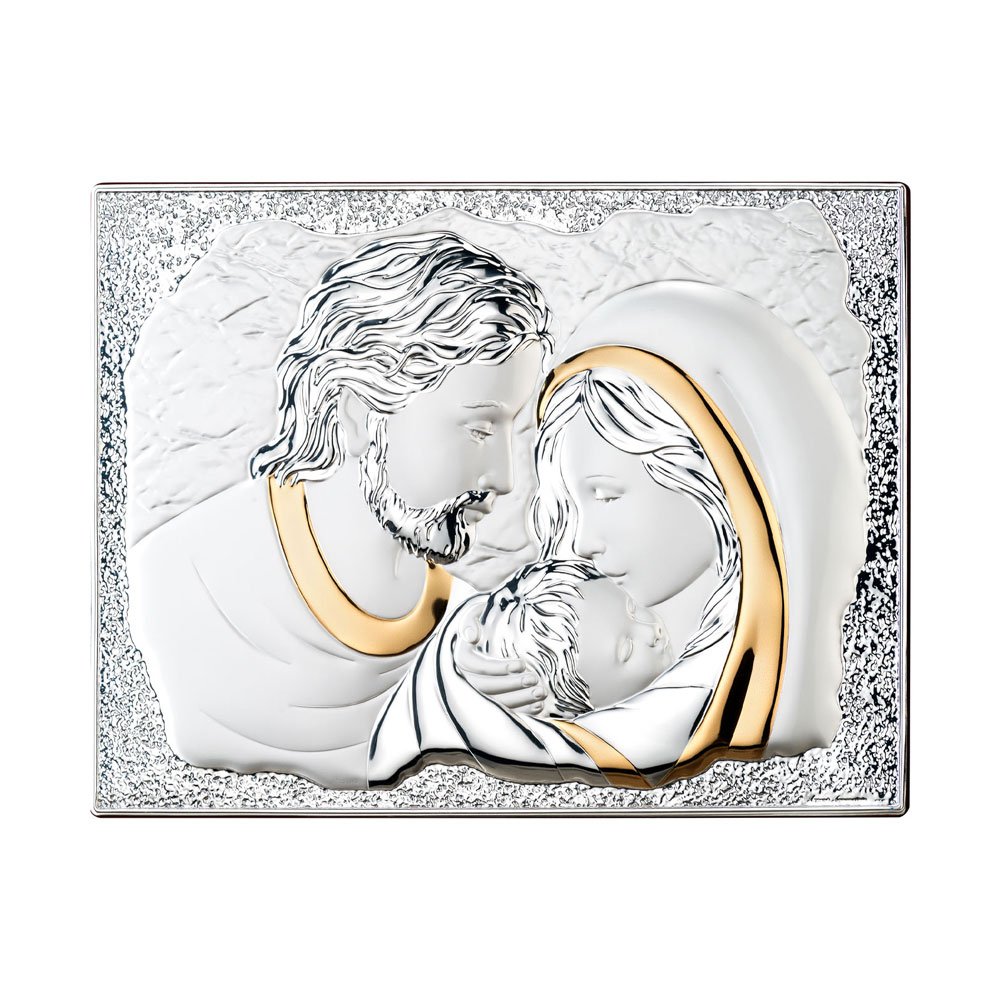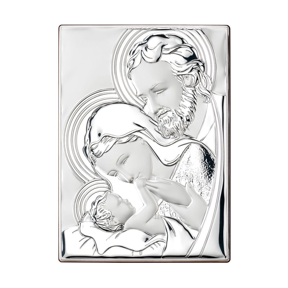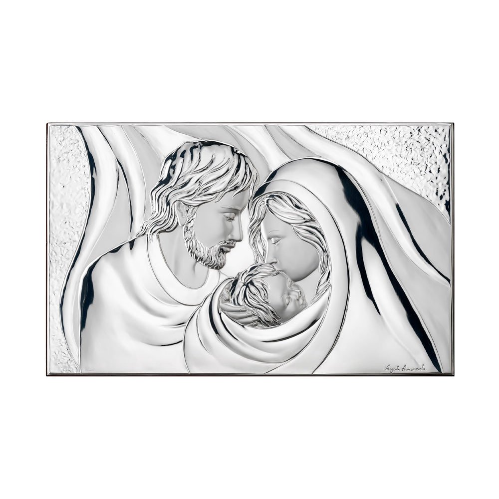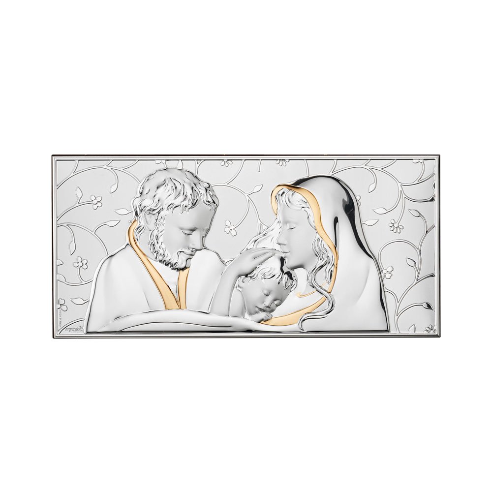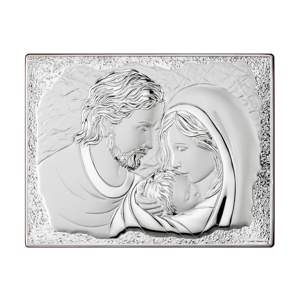 ICONA SACRA FAMIGLIA REALIZZATA IN ARGENTO PVD RETRO LEGNO DA PARETE E DA APPOGGIO