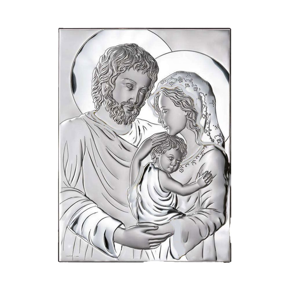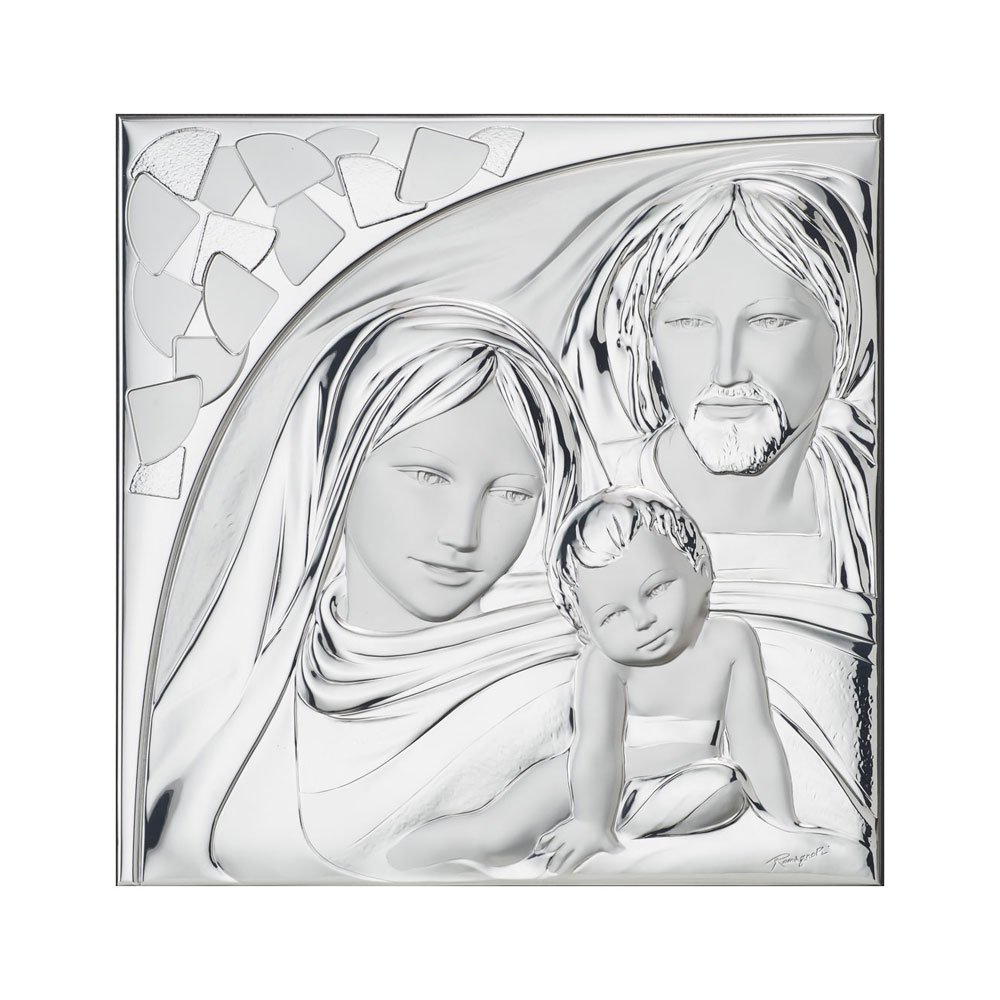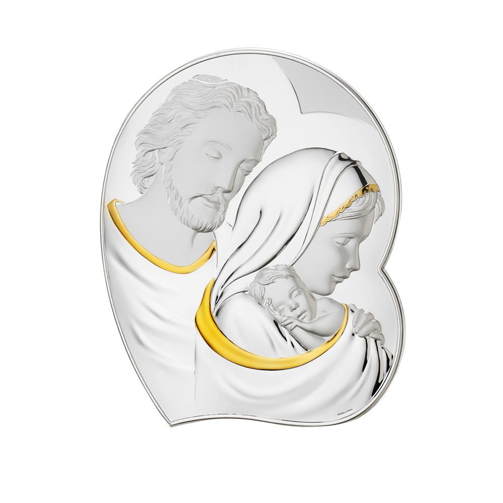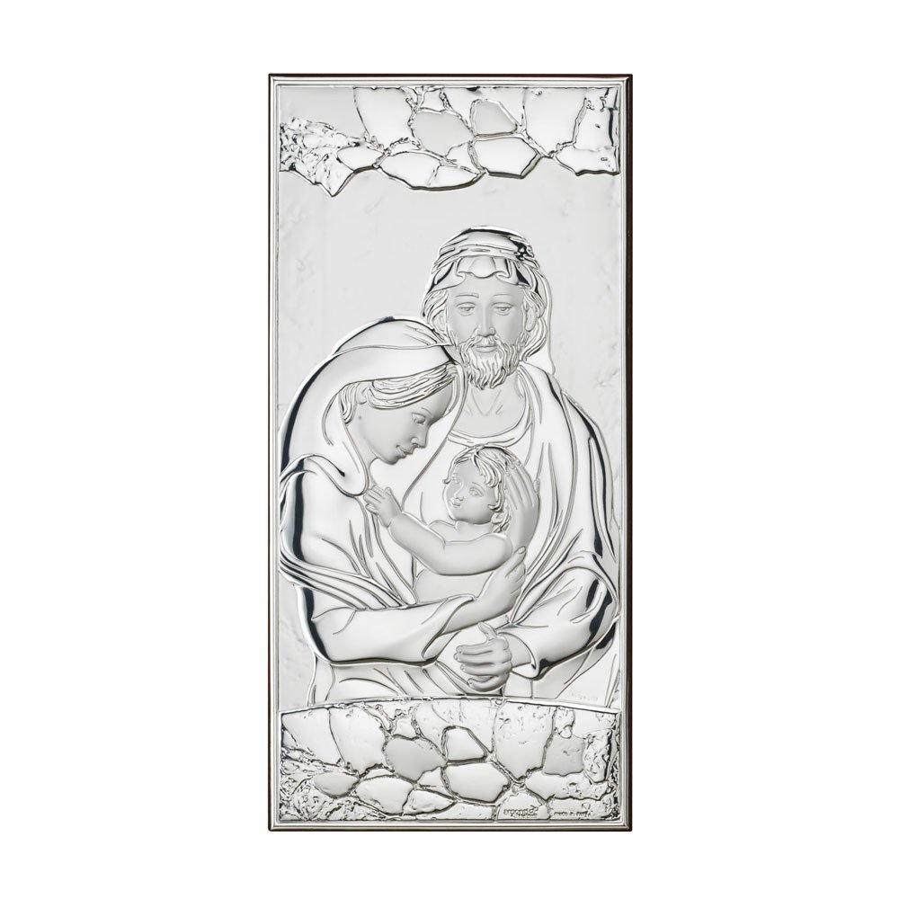 ICONA SACRA FAMIGLIA REALIZZATA IN ARGENTO PVD RETRO LEGNO DA PARETE E DA APPOGGIO