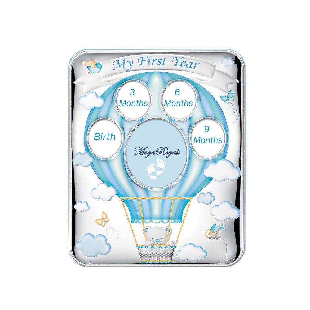 PORTAFOTO MULTIPLO MONGOLFIERA 27X33 COLORATA CELESTE IN ARGENTO PVD