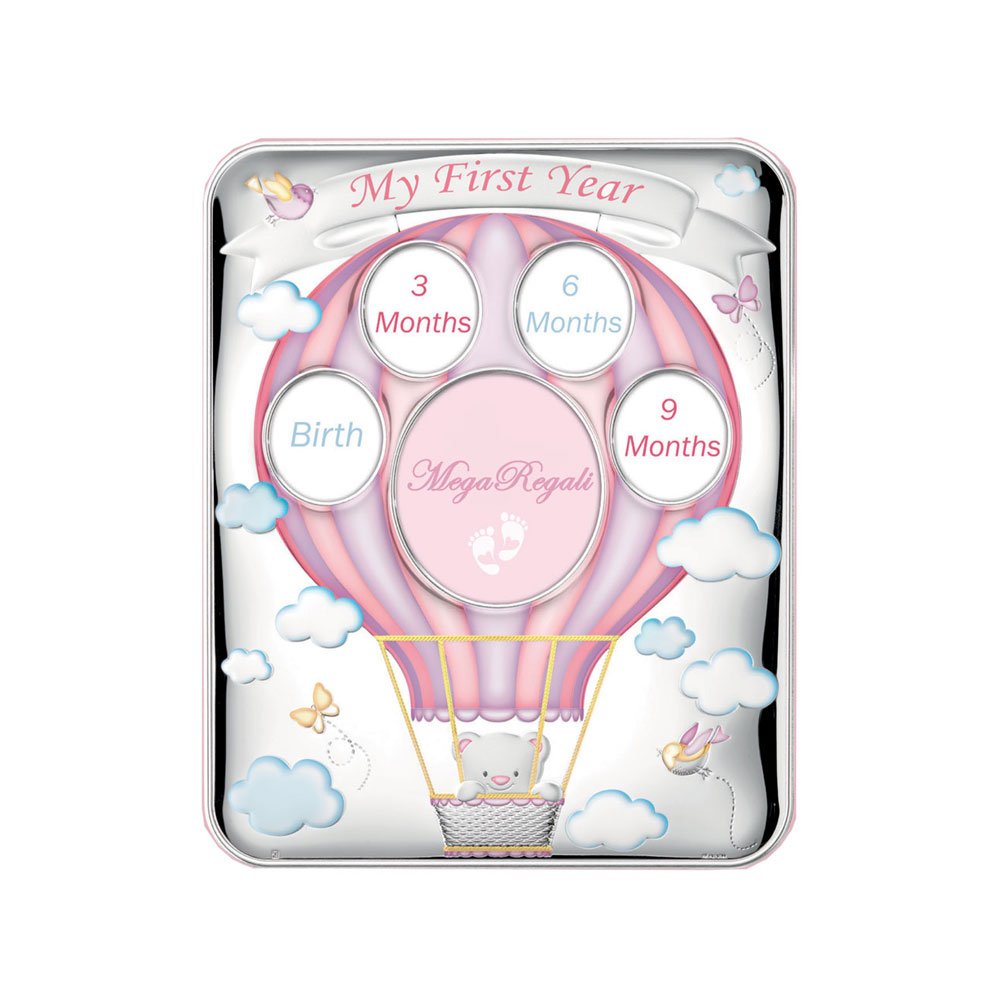 PORTAFOTO MULTIPLO MONGOLFIERA 27X33 COLORATA ROSA IN ARGENTO PVD
