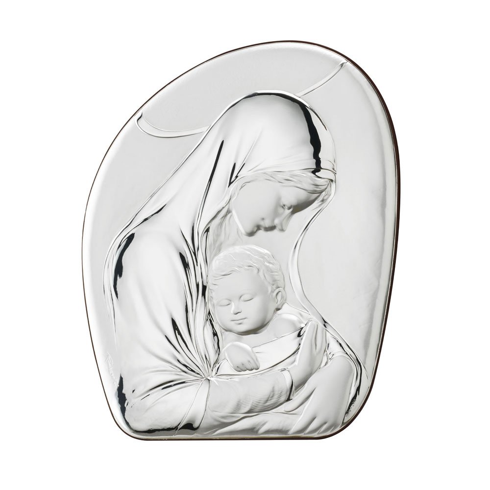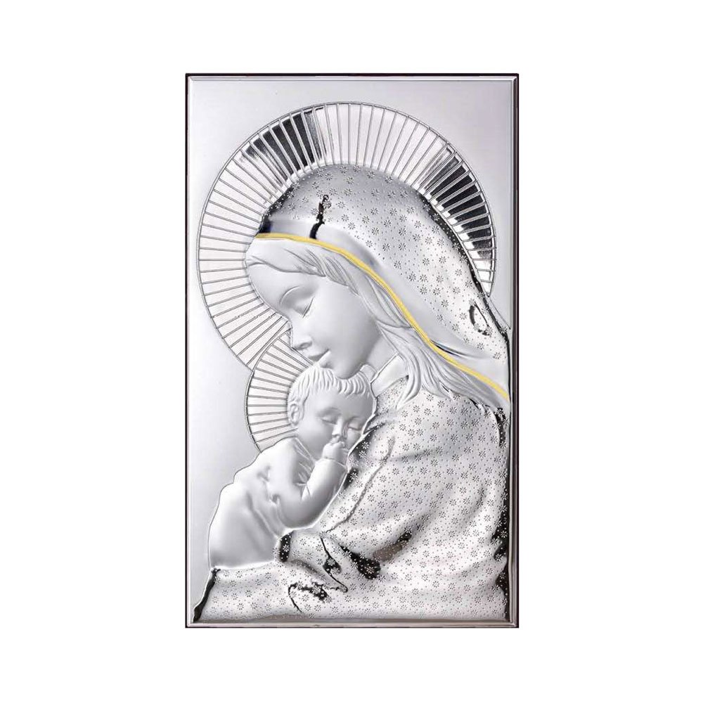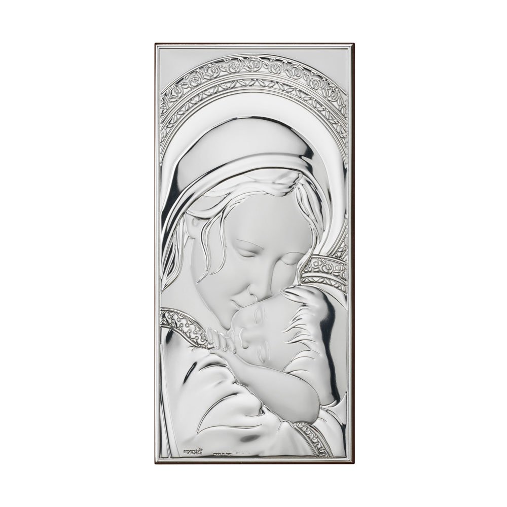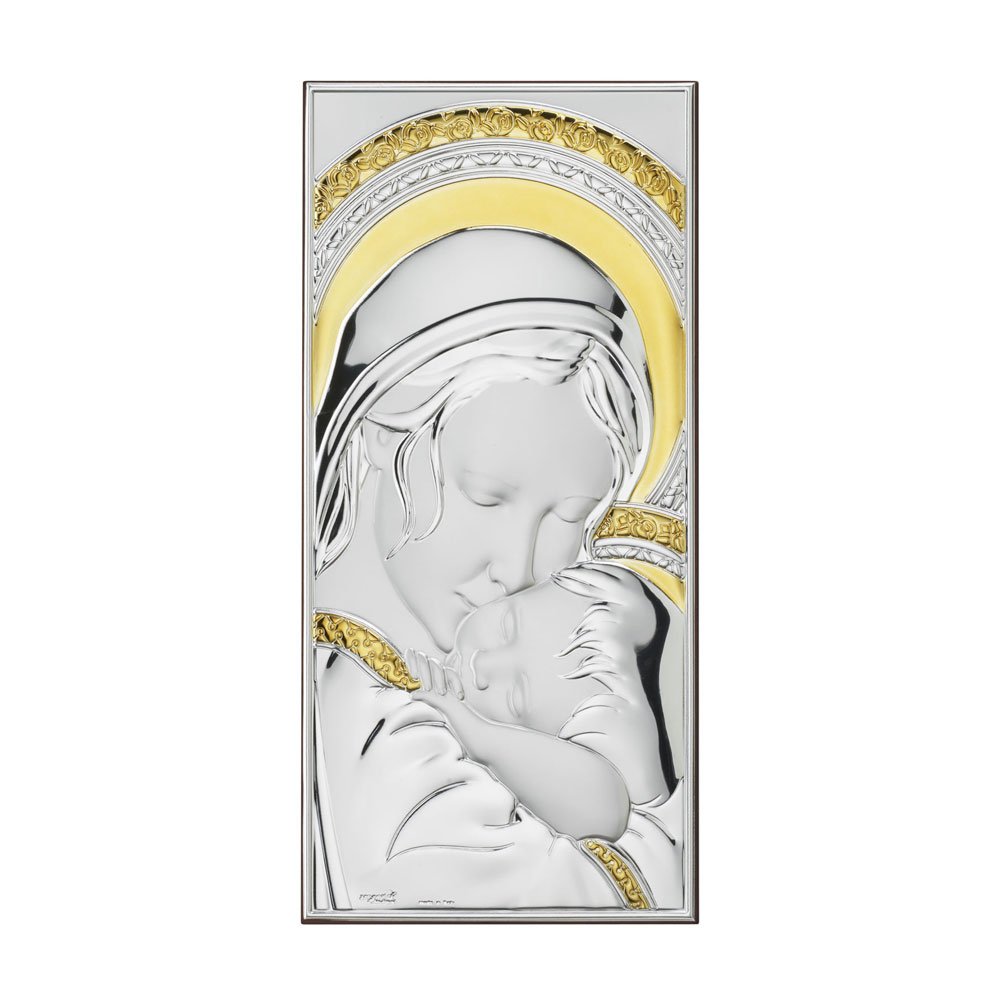 ICONA MADONNA FERRUZZI MISURA 16X34 REALIZZATA IN ARGENTO PVD RETRO LEGNO DA PARETE E DA APPOGGIO