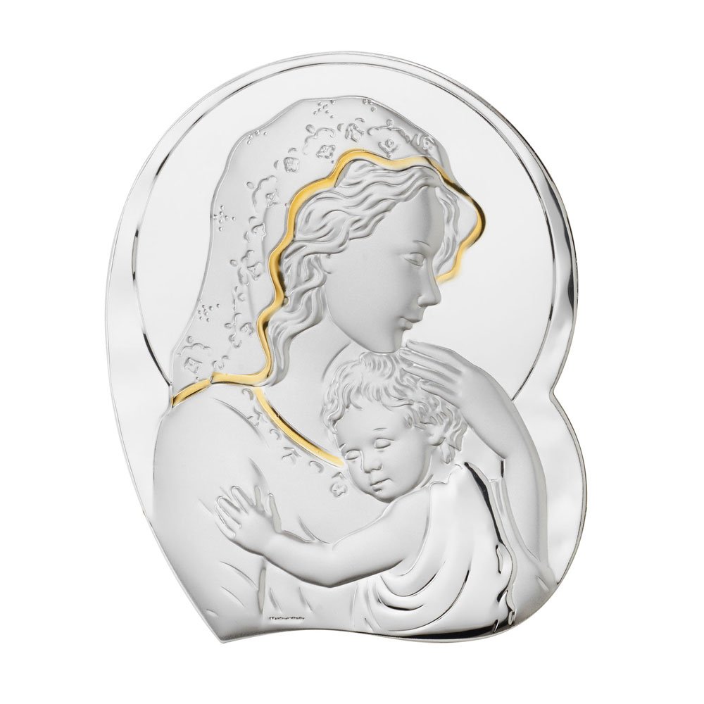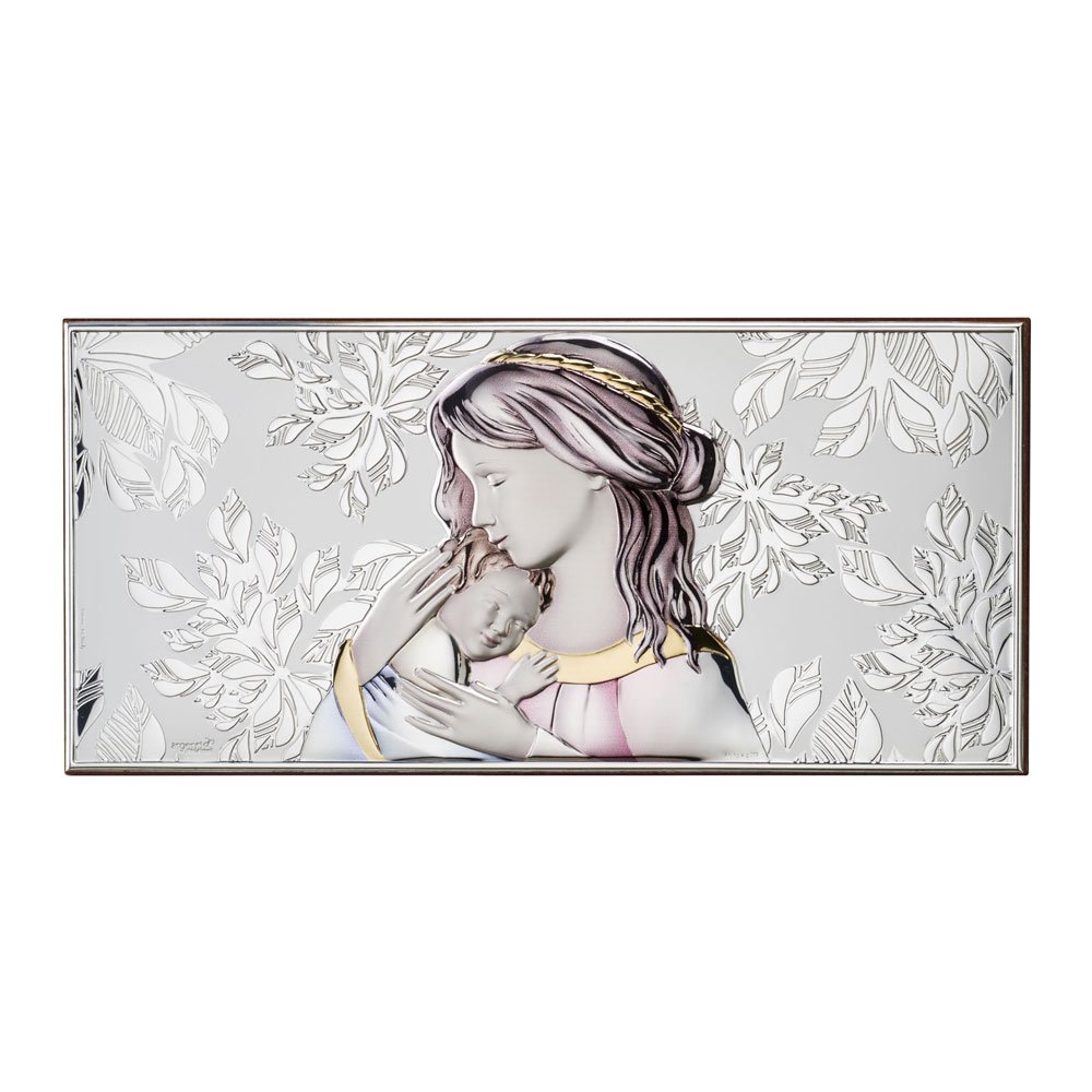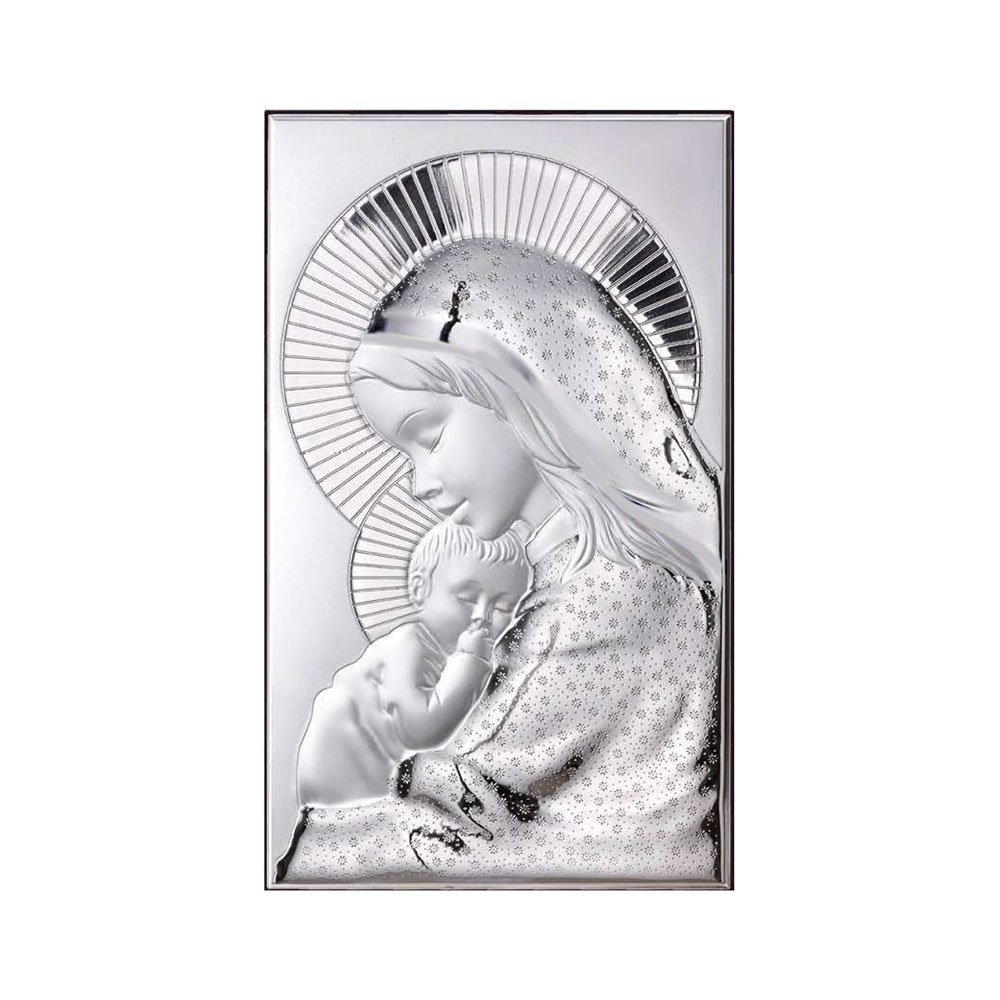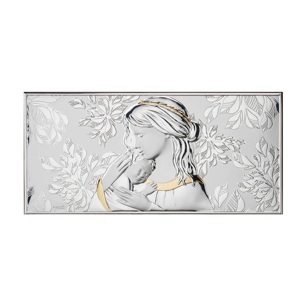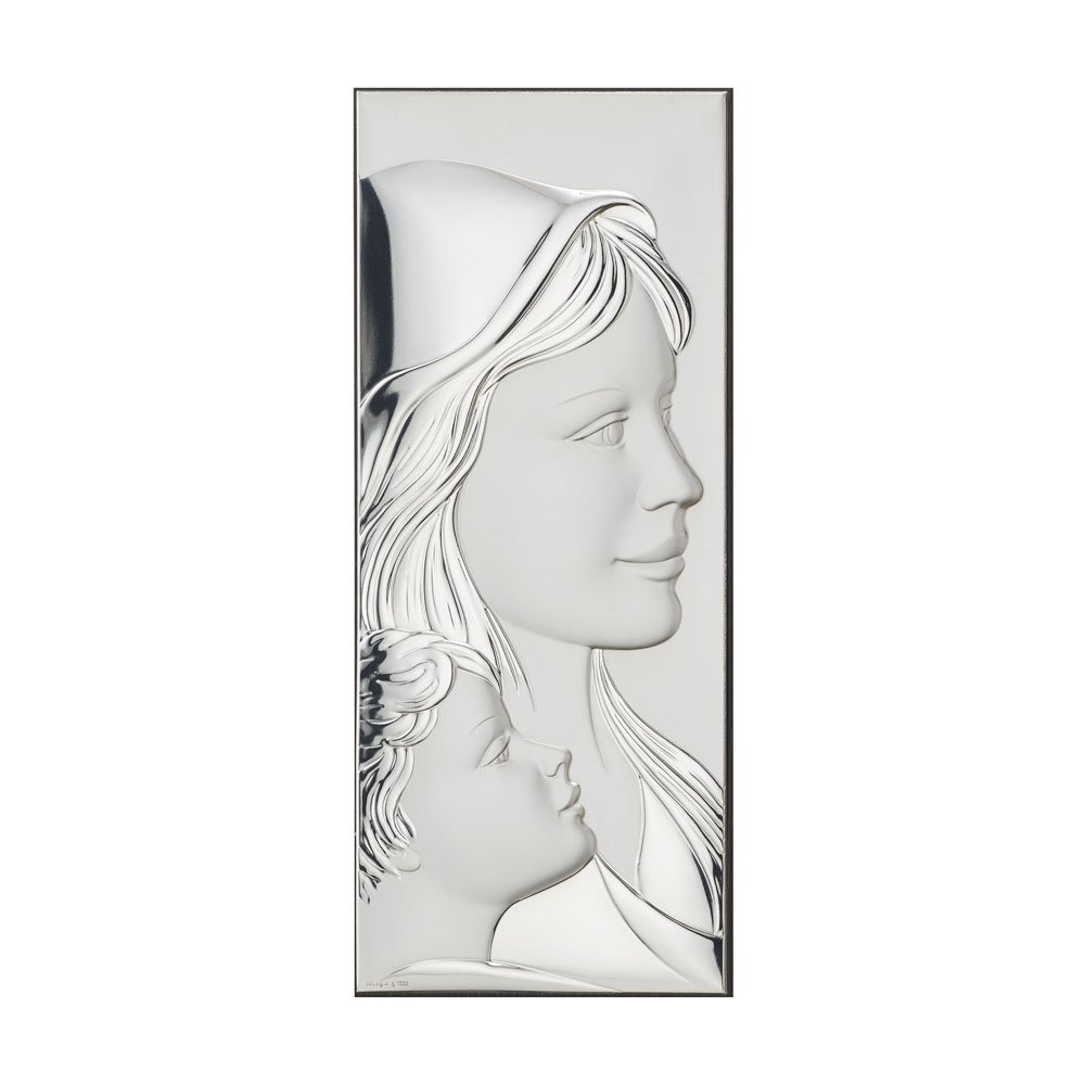 ICONA MADONNA FERRUZZI MISURA 16X34 REALIZZATA IN ARGENTO PVD RETRO LEGNO DA PARETE E DA APPOGGIO
