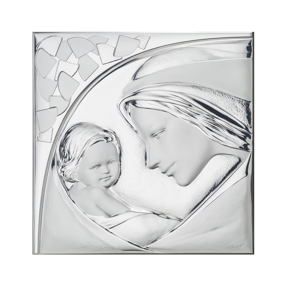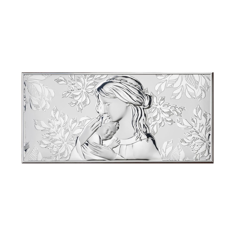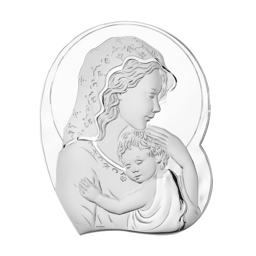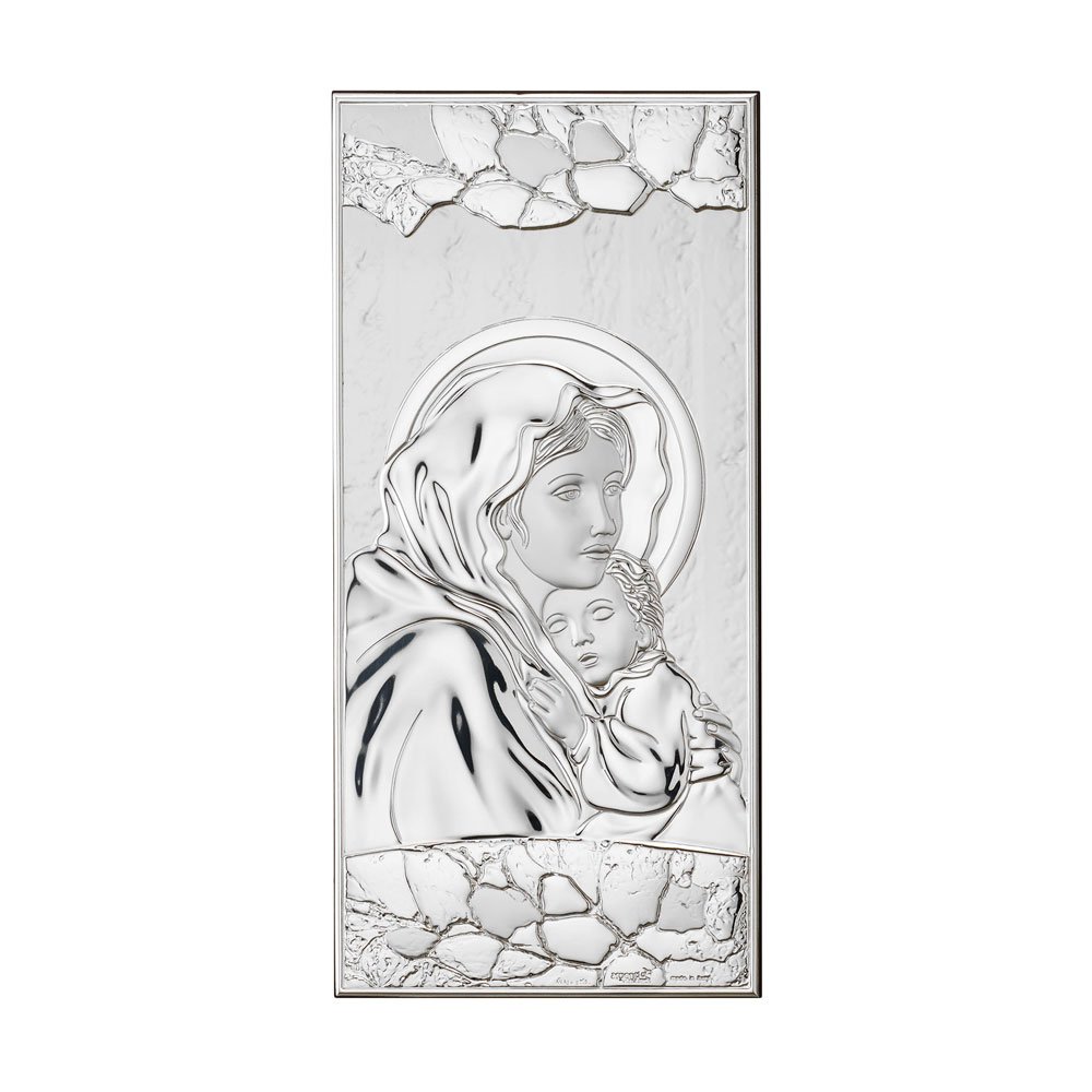 ICONA MADONNA FERRUZZI MISURA 16X34 REALIZZATA IN ARGENTO PVD RETRO LEGNO DA PARETE E DA APPOGGIO