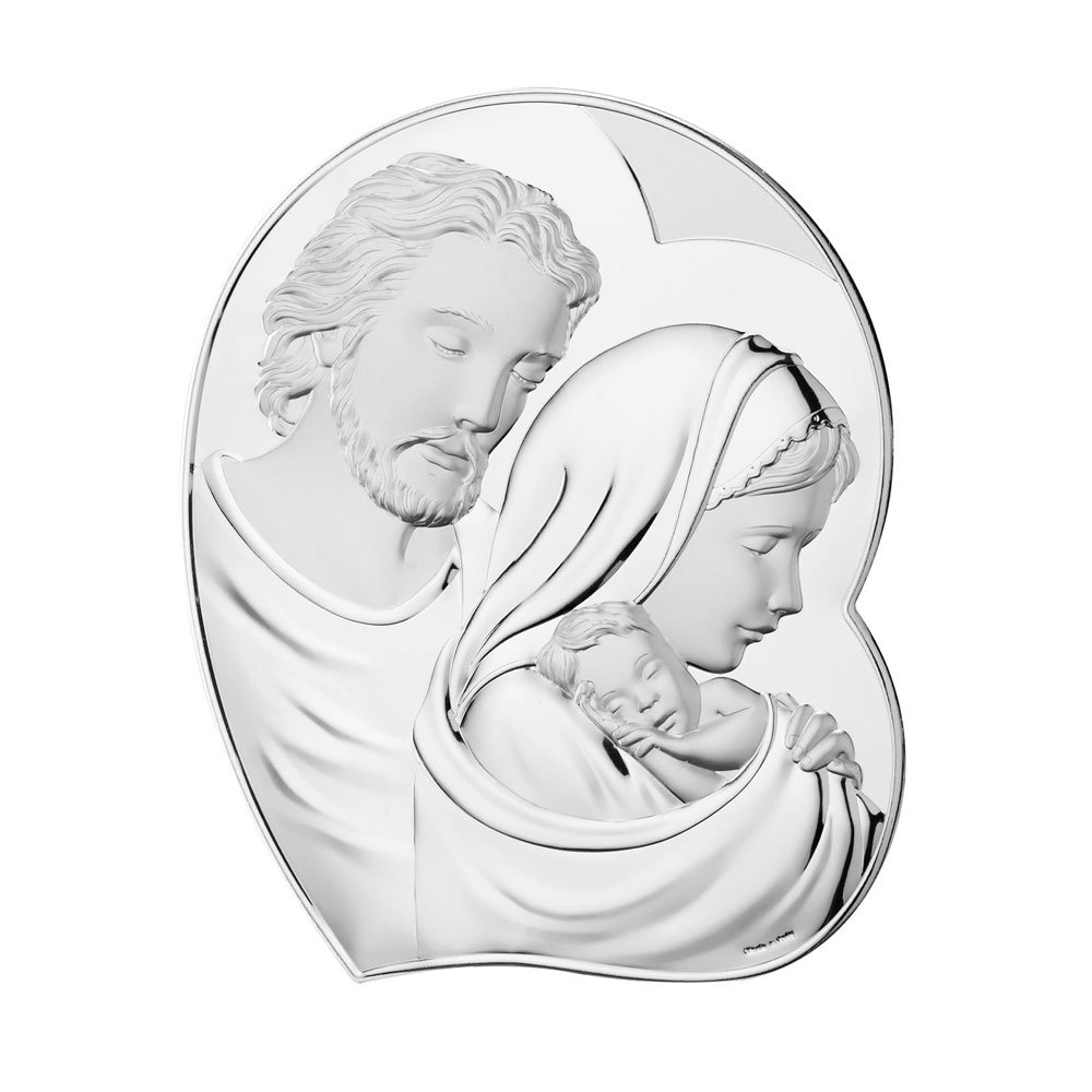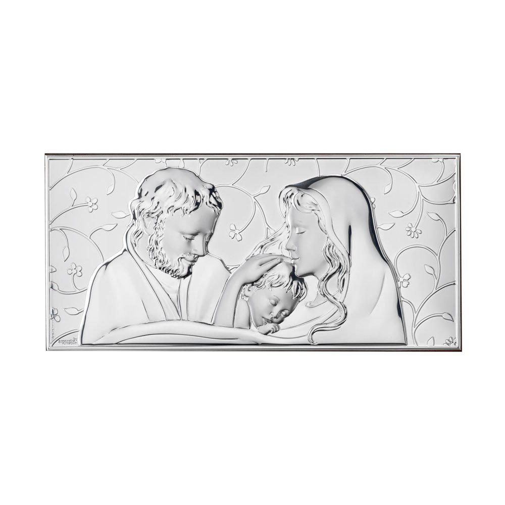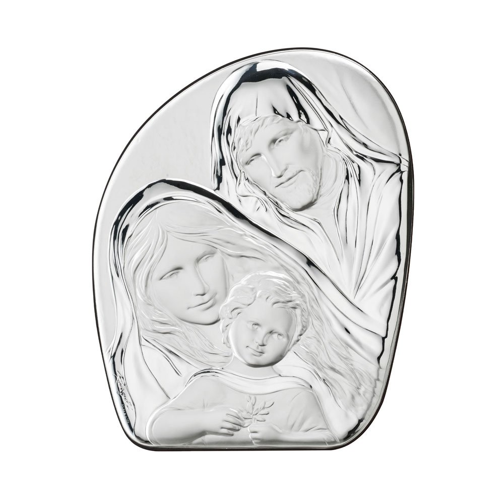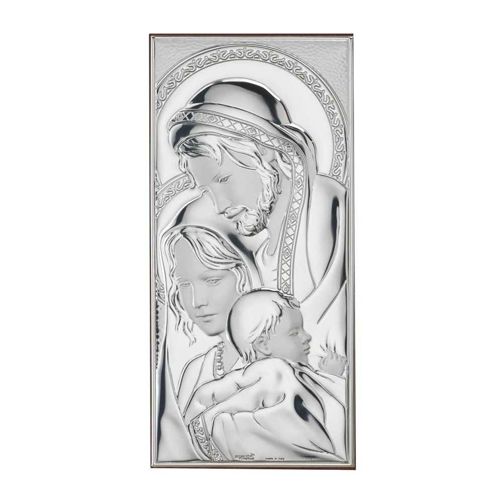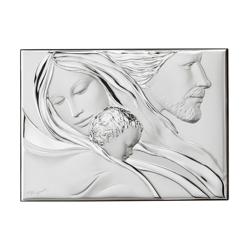 SACRA FAMIGLIA IN ARGENTO PVD RETRO LEGNO DA PARETE E DA APPOGGIO