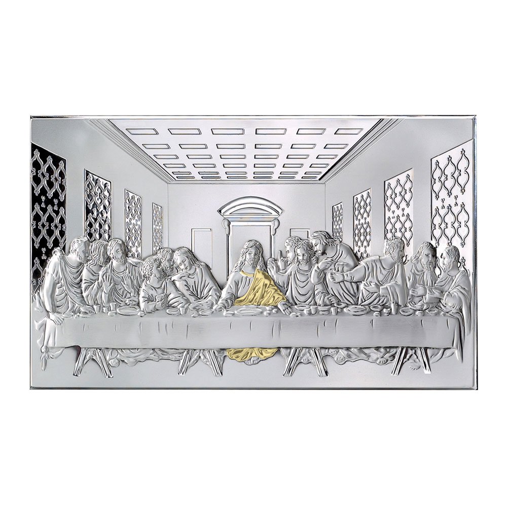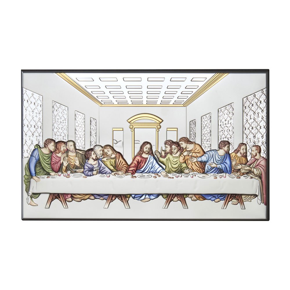 ICONA ULTIMA CENA COLORATA REALIZZATA IN ARGENTO PVD RETRO LEGNO DA PARETE E DA APPOGGIO