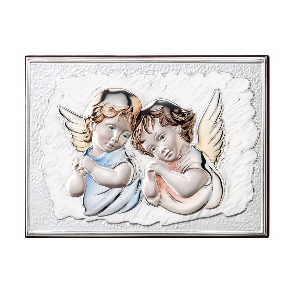 ANGELI CON PARTICOLARI COLORATI REALIZZATA IN ARGENTO PVD RETRO LEGNO DA PARETE E DA APPOGGIO