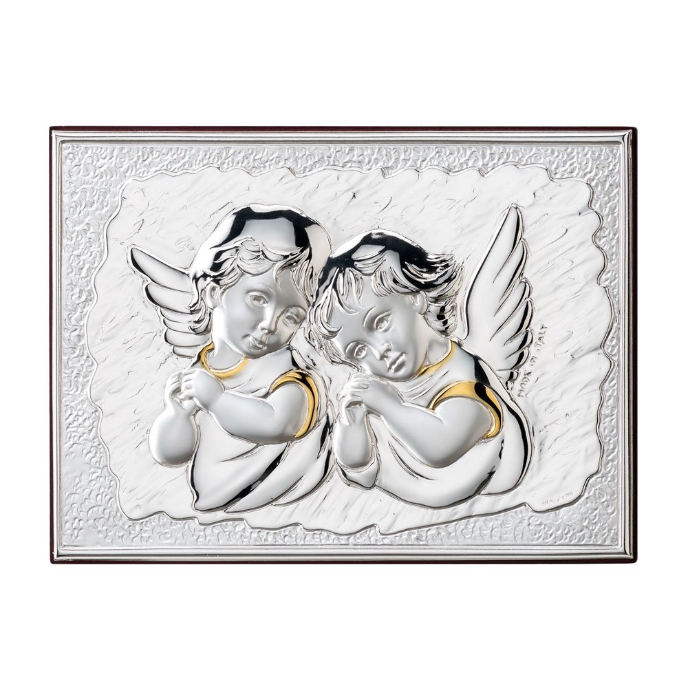 ICONA ANGELI REALIZZATA IN ARGENTO PVD RETRO LEGNO DA PARETE E DA APPOGGIO