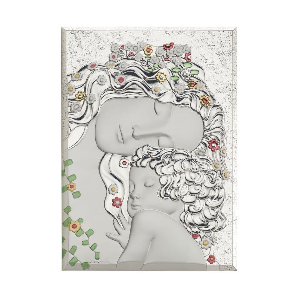 ICONA MADONNA COLORATA REALIZZATA IN ARGENTO PVD RETRO LEGNO DA PARETE E DA APPOGGIO