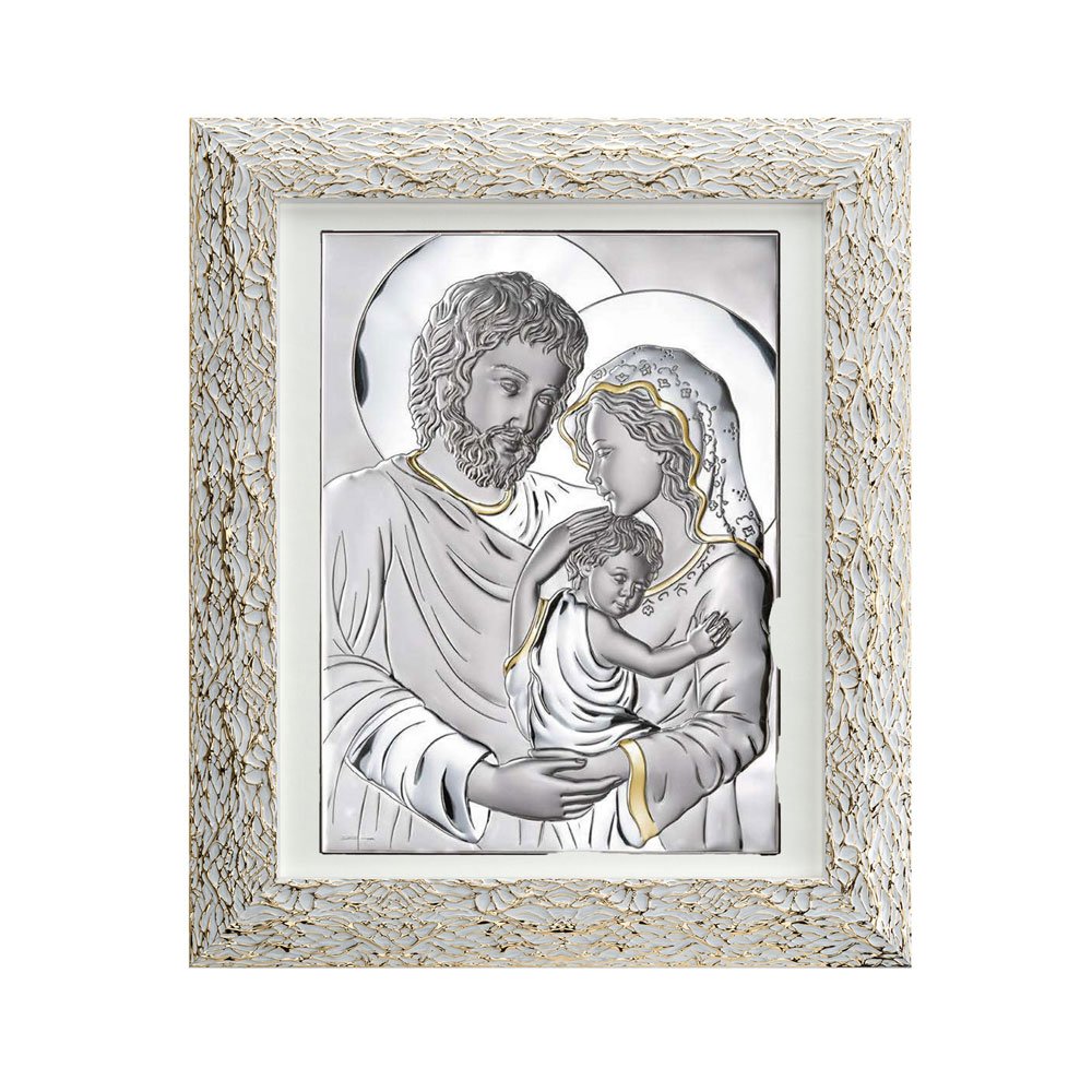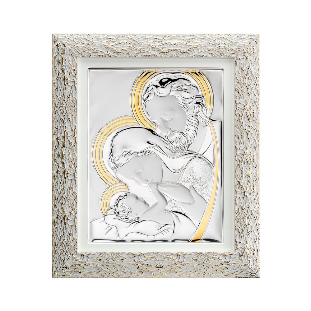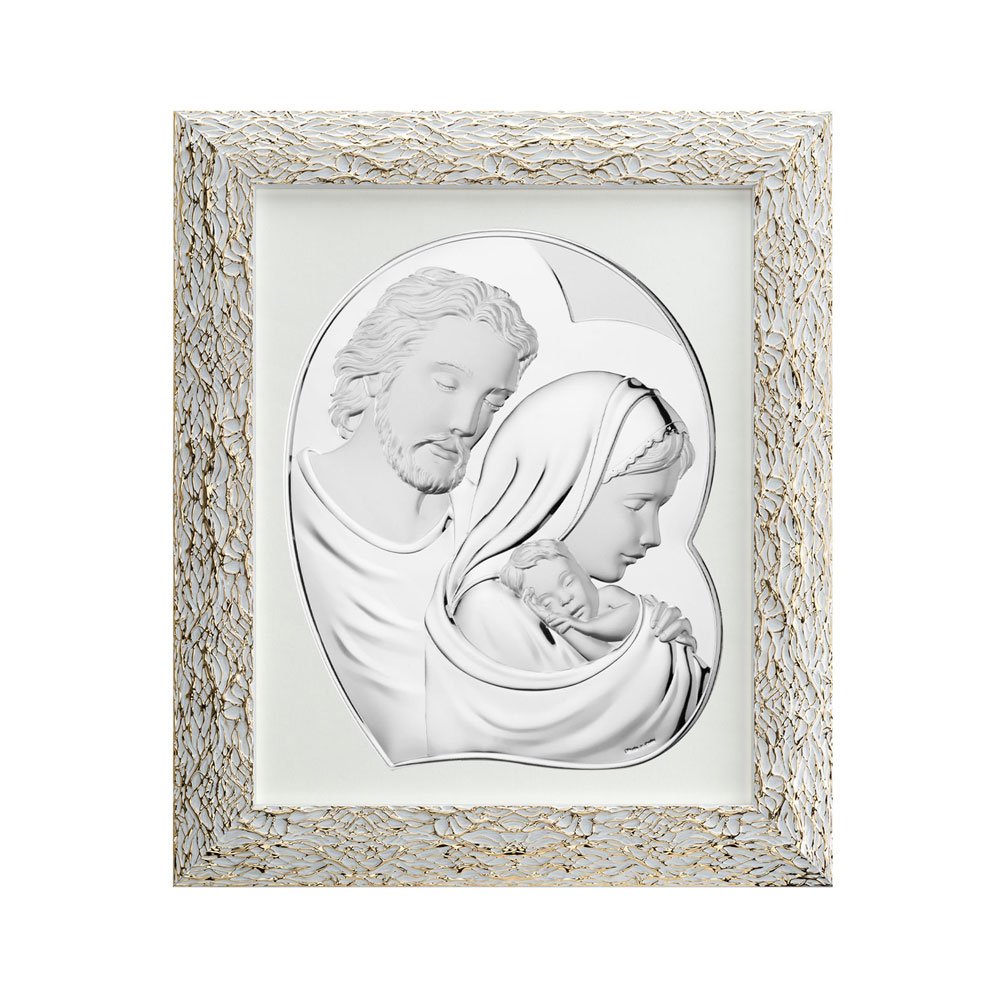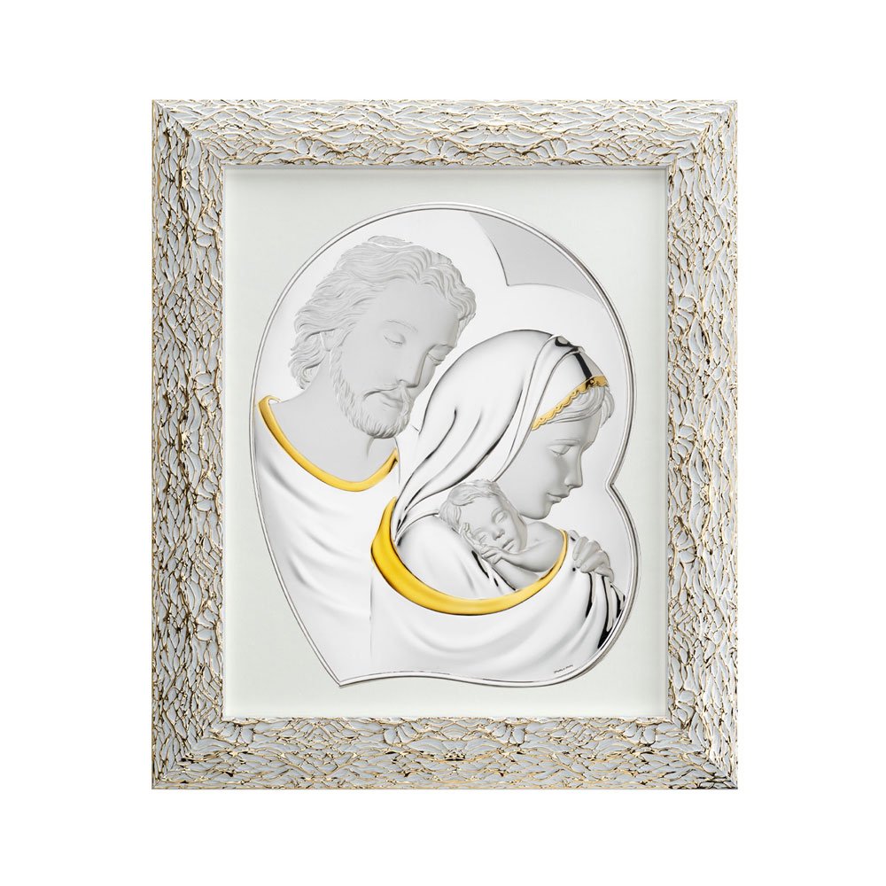 QUADRO SACRA FAMIGLIA IN ARGENTO PVD CON CORNICE ORO RAGNO