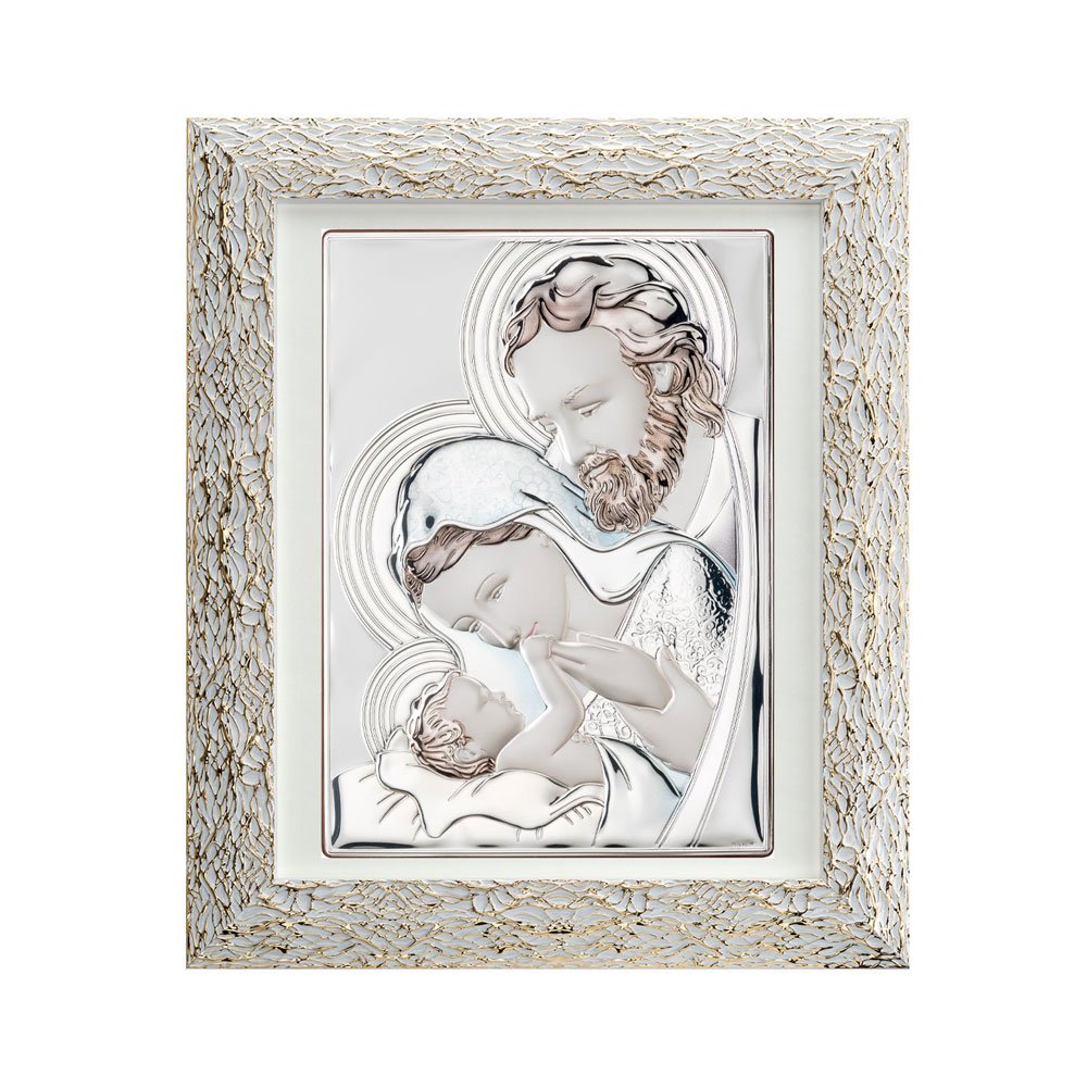 QUADRO SACRA FAMIGLIA IN ARGENTO PVD CON COLORE SU LASTRA CON CORNICE ORO RAGNO