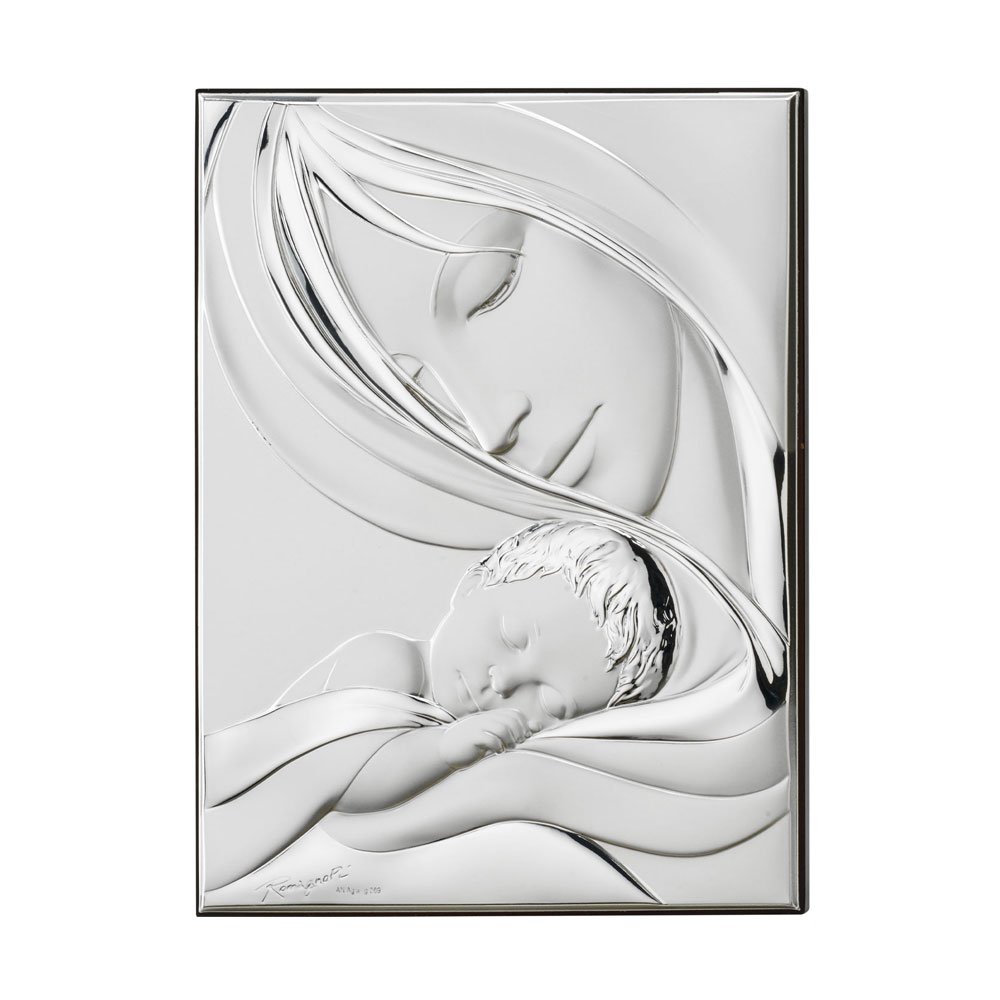 ICONA MADONNA REALIZZATA IN ARGENTO PVD RETRO LEGNO DA PARETE E DA APPOGGIO